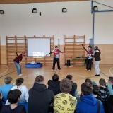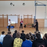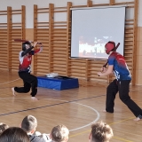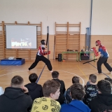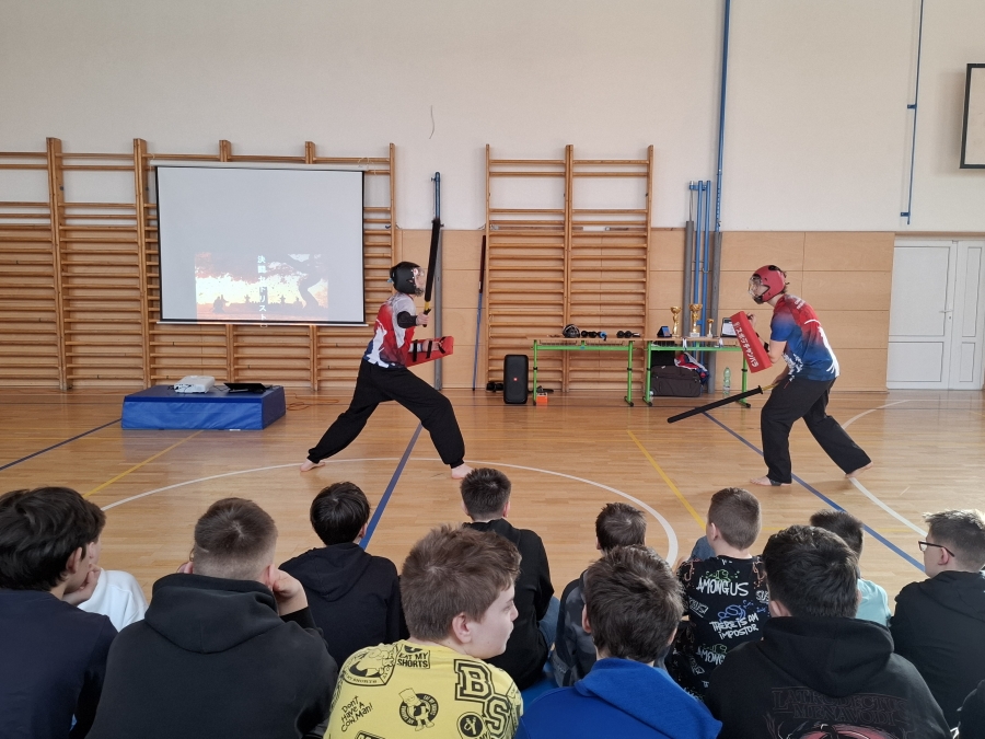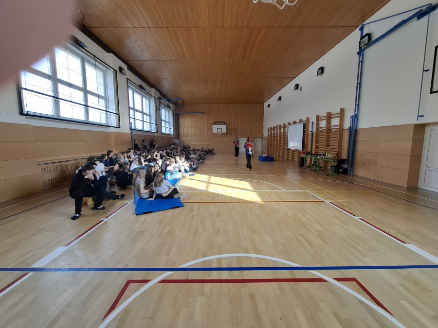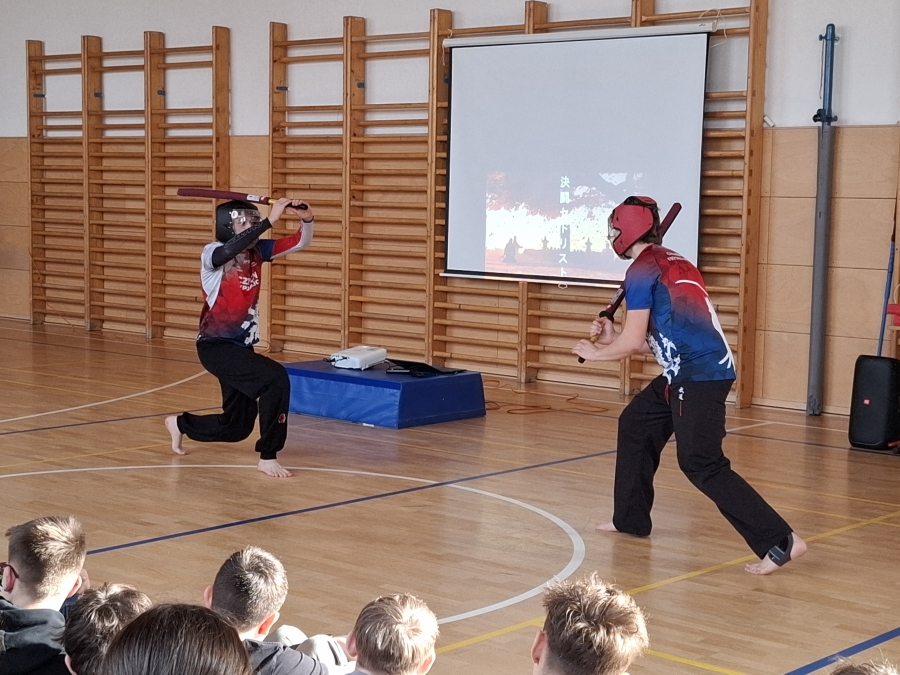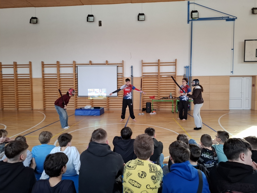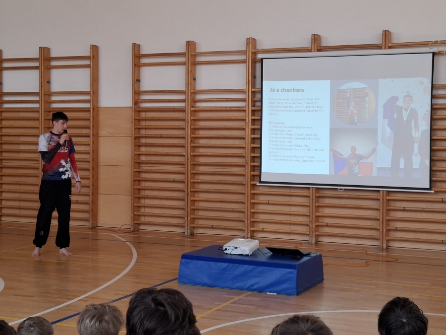 Během her jsme ve spolupráci se školním parlamentem připravili také několik speciálních akcí. Projekt odstartovala sportovní prezentace bojového umění Chanbara. Tu si pro celou školu připravil Kuba Kašok z 9. třídy se spolužákem Dominikem Špetíkem. Kuba je bronzovým medailistou z mistrovství světa v Japonsku, a jak jsme se mohli přesvědčit, zcela zaslouženě. Nejenže poutavě vyprávěl o svém sportu, ale předvedl i ukázky s různými typy zbraní. Někteří spolužáci si mohli chanbaru sami vyzkoušet – a rychle zjistili, že nejde o žádnou jednoduchou disciplínu.