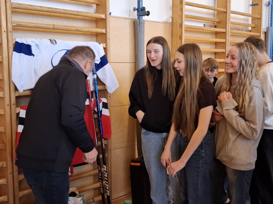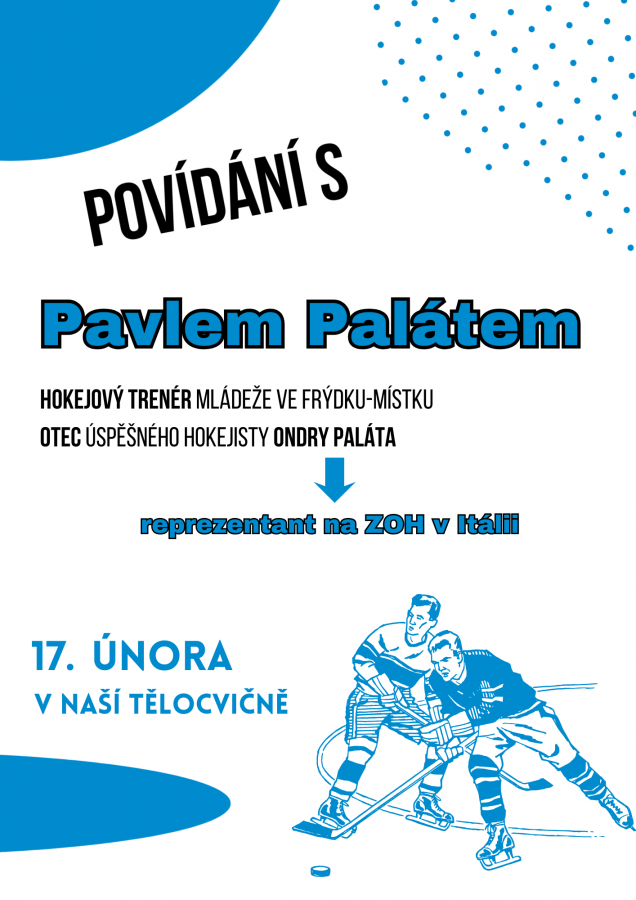 V dalším týdnu nás navštívil hokejový trenér mládeže z Frýdku-Místku pan Pavel Palát. Vyprávěl nám nejen o své trenérské práci, ale také o cestě svého syna, profesionálního hokejisty Ondřeje Paláta, až do nejslavnější hokejové ligy světa – NHL. Zajímavé byly i jeho čerstvé zážitky z Milána, kde osobně sledoval dva olympijské hokejové zápasy.