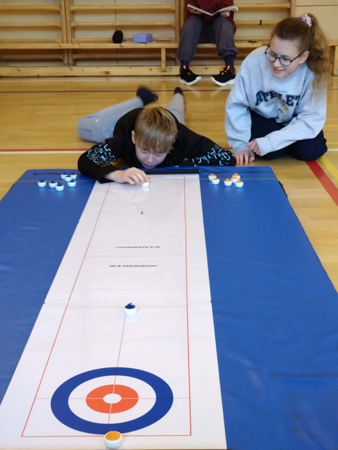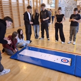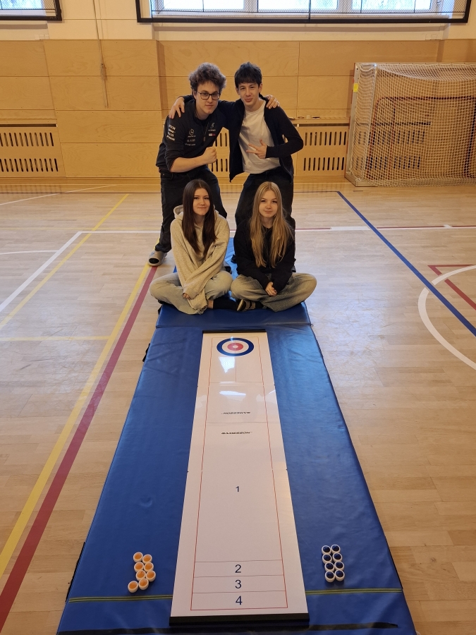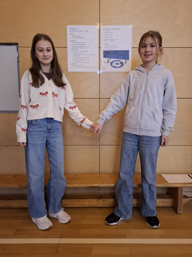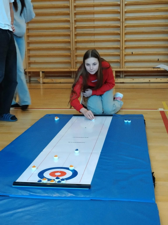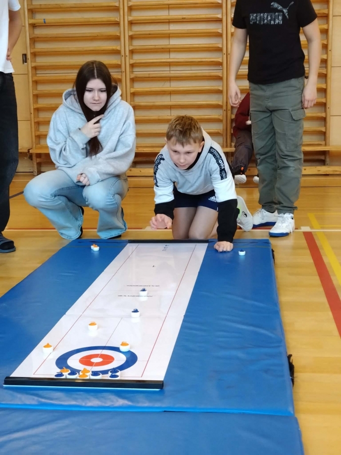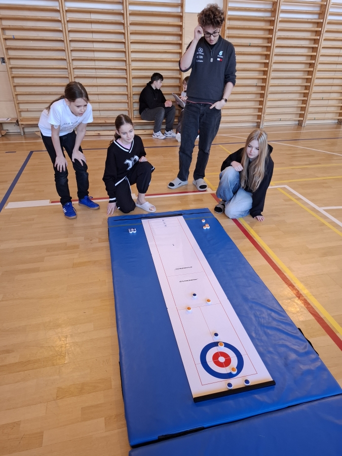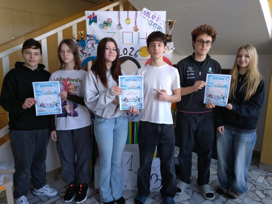 Olympijskou atmosféru jsme si vyzkoušeli také na vlastní kůži při školním minicurlingu. Přestože šlo o zjednodušenou verzi této zimní hry, napětí a soustředění byly skutečně soutěžní. Z 5. až 9. tříd bylo nominováno deset smíšených dvojic a po několika kolech se vítězem stal tým z 9. třídy.