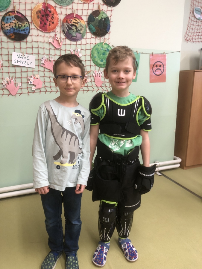 Hned následující den patřil sportovnímu oblečení. Školní chodby zaplnily hokejové dresy, brankářské betony i hokejky. Potkat jsme ale mohli i fotbalisty, tenisty, gymnastky, takewondisty či lezce s výbavou. Atmosféra byla plná energie ale také hrdosti.