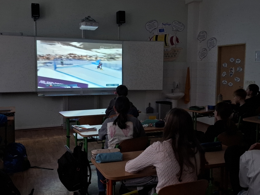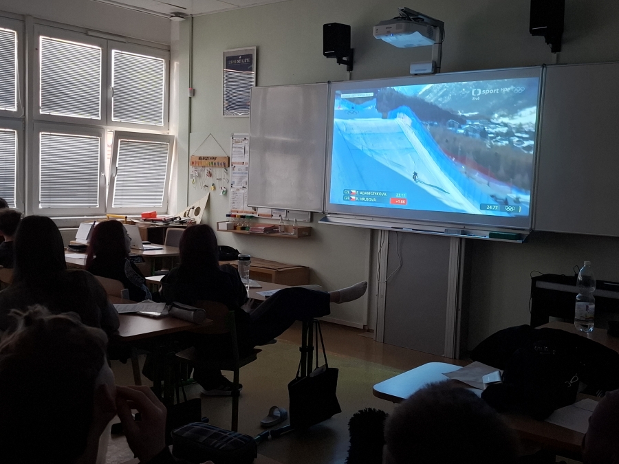 Silným zážitkem bylo také společné fandění. Na konci prvního olympijského týdne si všechny třídy ve stejný čas pustily přímý přenos snowboardcrossu, kde Českou republiku reprezentovala Eva Adamczyková. I když jsme sledovali „jen“ semifinále, fandili jsme naplno. A když Eva odpoledne vybojovala stříbrnou medaili, radost a hrdost byly o to větší.