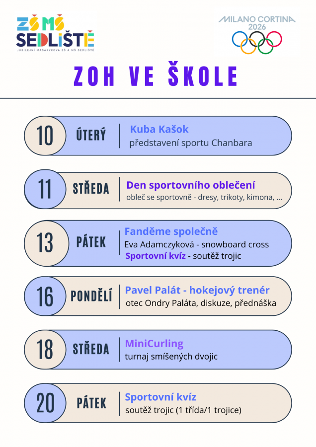 Olympijská témata se přirozeně promítla i do výuky. V českém jazyce a čtenářských lekcích jsme se vydali do historie her i k aktuálnímu dění na ZOH v Miláně a Cortině d’Ampezzo. V matematice žáci počítali s olympijskými rekordy a sportovními statistikami, v zeměpise vyhledávali a zpracovávali informace o hostitelských městech. Škola tak skutečně žila olympiádou ve všech předmětech.