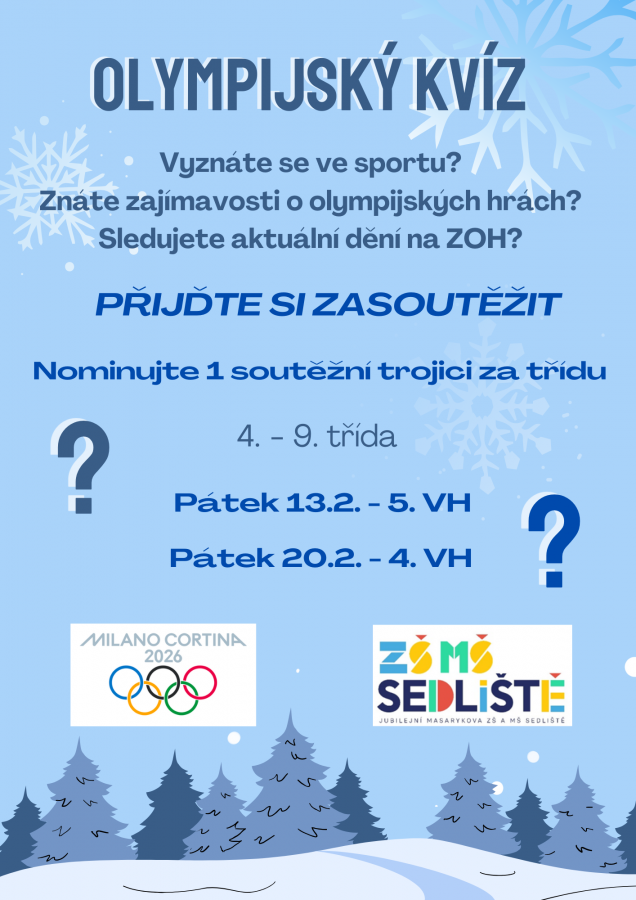 Nezapomněli jsme ani na vědomosti. Připravili jsme olympijský kvíz, který proběhl hned dvakrát. První část se zaměřila na historii a obecné informace o olympijských hrách, druhá už byla věnována aktuálnímu dění v Miláně. Soutěžily tříčlenné týmy ze 4. až 9. tříd. Otázky nebyly jednoduché, přesto žáci prokázali výborný přehled. Největším překvapením se stali naši čtvrťáci – v obou kolech porazili své starší spolužáky a dokázali, že nadšení a zájem mohou být silnější než věk.