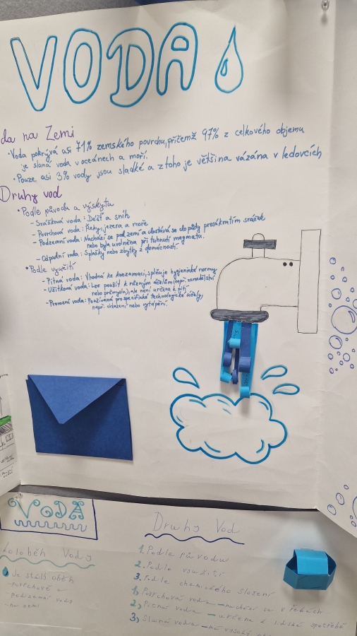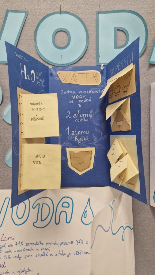Žáci 8. třídy se v hodinách chemie pustili do projektové výuky, která spojila vědecké poznání s kreativitou a prezentačními dovednostmi. Úkolem bylo vytvořit lapbook na téma Voda nebo Vzduch. A jak projekt probíhal? Žáci pracovali ve dvojicích a téma – voda nebo vzduch – si vylosovali. Poté společně vytvářeli lapbook, který musel obsahovat - minimálně 5 interaktivních prvků obsahující nejdůležítější informace z vybraného tématu. Každá dvojice představila svůj projekt spolužákům a vysvětlila obsah jednotlivých interaktivních prvků. Žáci sami bodově hodnotili své projekty podle předem stanovených kritérií (obsahová správnost, kreativita, zpracování, prezentace). Z výsledků hodnocení si následně vytvořili sloupcový graf, který názorně ukázal jejich celkové hodnocení. Žáci opět pracovali perfektně. Projekty byly kreativní, pečlivě zpracované a plné zajímavých informací.
