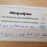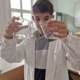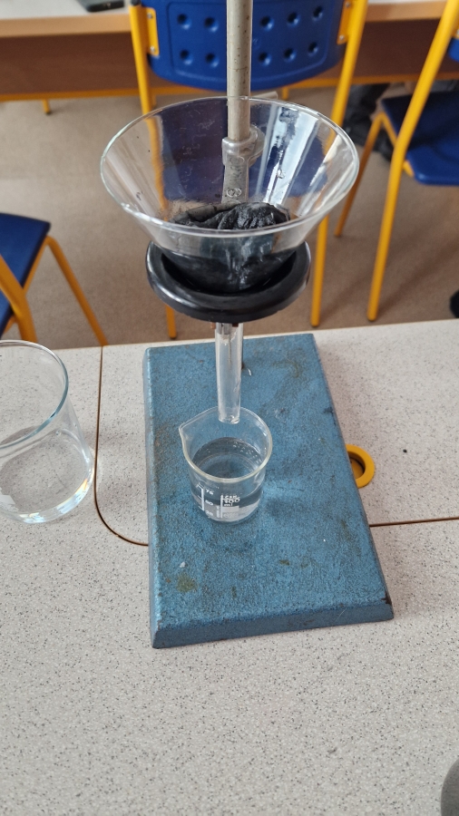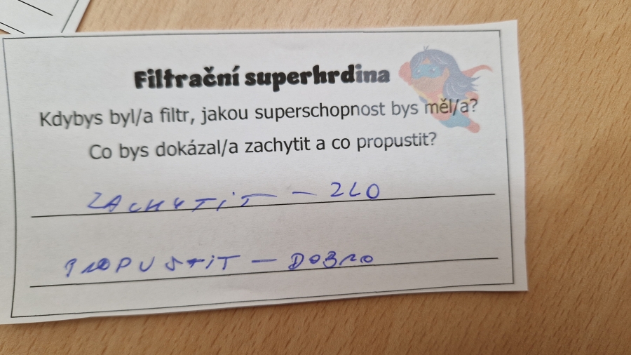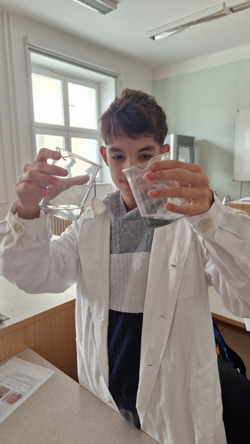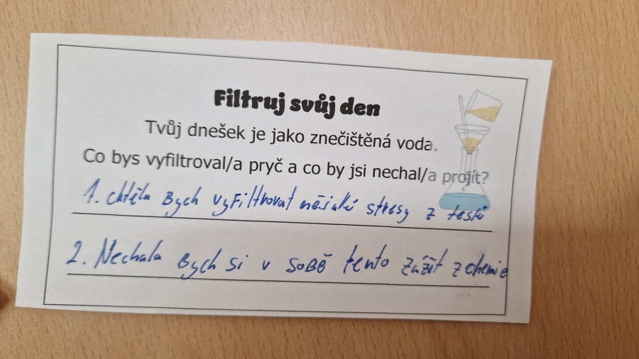 Žáci osmé třídy absolvovali druhou laboratorní práci zaměřenou na praktické metody oddělování složek směsí. Během tohoto experimentu si vyzkoušeli hned několik zajímavých technik. První část laboratorní práce byla věnována filtraci. Žáci filtrovali černé uhlí pomocí dvou různých filtračních materiálů - filtračního papíru a vaty. Experimentálně si žáci ověřili, že jak filtrační papír, tak vata jsou vynikající filtračními materiály, které dokážou účinně zachytit pevné částice a propustit tekutou složku směsi. Druhá část práce byla zaměřena na chromatografii, metodu, která umožňuje rozdělit směs na jednotlivé barevné složky. Žáci zkoušeli dvě varianty: chromatografii lihových fixů na křídě a chromatografii lentinek ve vodě. Tato část se bohužel většině žáků příliš nezdařila. Chromatografie je totiž náročnější technika vyžadující přesné dodržení podmínek. Nicméně několik žáků uspělo a chromatografie lihových fixů se jim podařila. Dokázali tak úspěšně rozdělit barvy a pozorovat, jak se jednotlivé barevné složky pohybují různou rychlostí. Na závěr žáci opět vyplnili exitku na téma Filtruj svůj den nebo Fitlrační superhrdina.