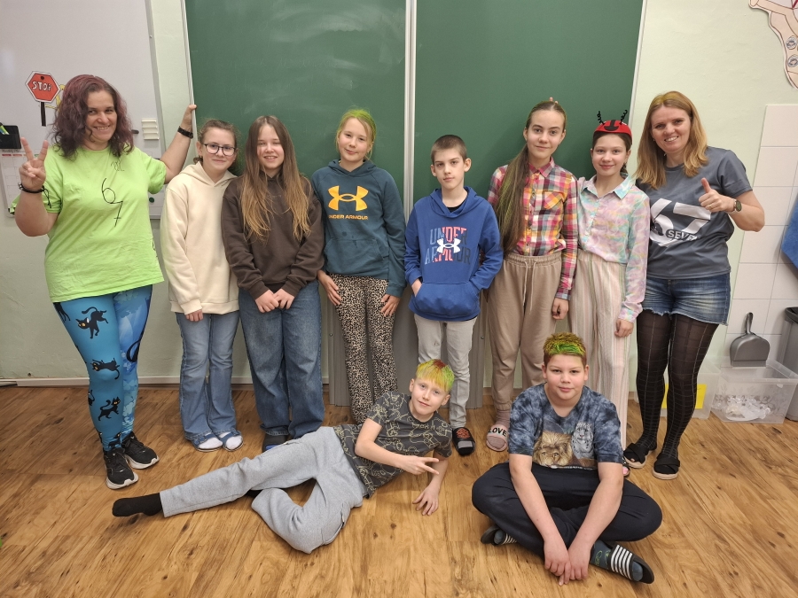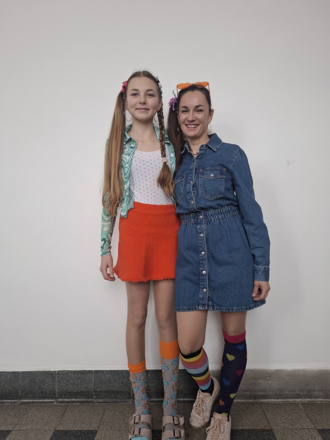 K vidění byly pestré barvy, bláznivé doplňky, originální účesy i odvážné kombinace oblečení. Nechyběly různobarevné vlasy, retro outfity, ani dámské šaty na klucích. Tradičně nezklamaly ani paní kuchařky, které se každé výzvy chopí s nadšením a na sto procent. Akce přinesla spoustu úsměvů, dobré nálady a byla příjemným zpestřením školních dnů. Bylo zkrátka fajn se na chvíli uvolnit a užít si trochu zábavy.