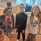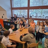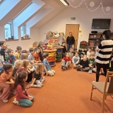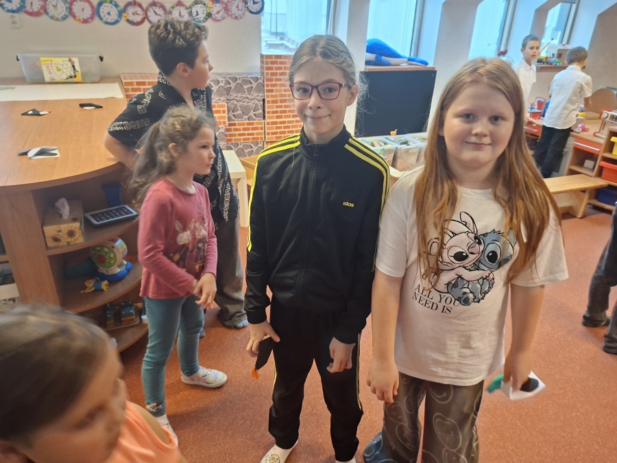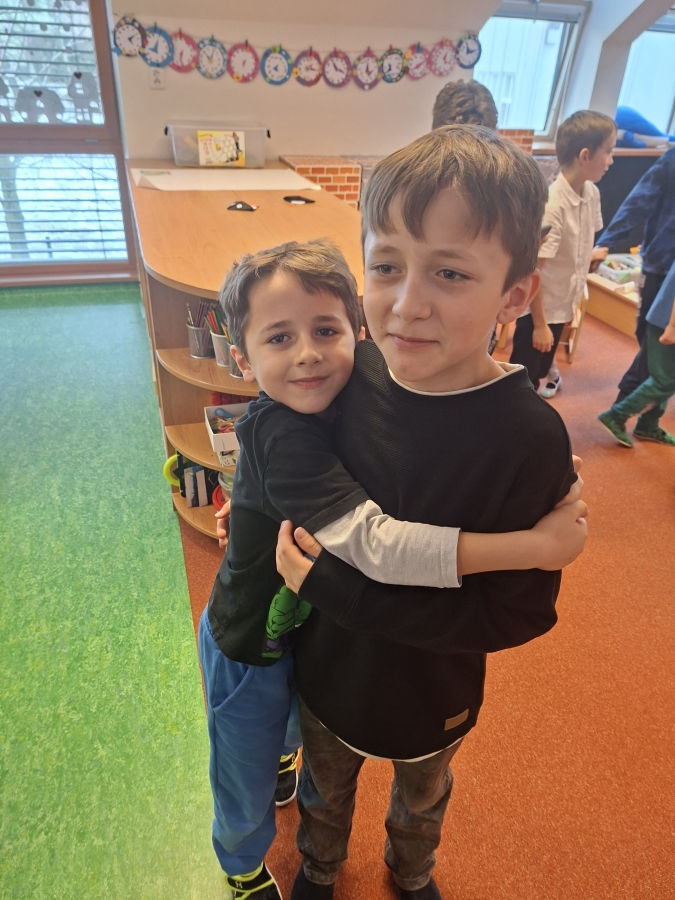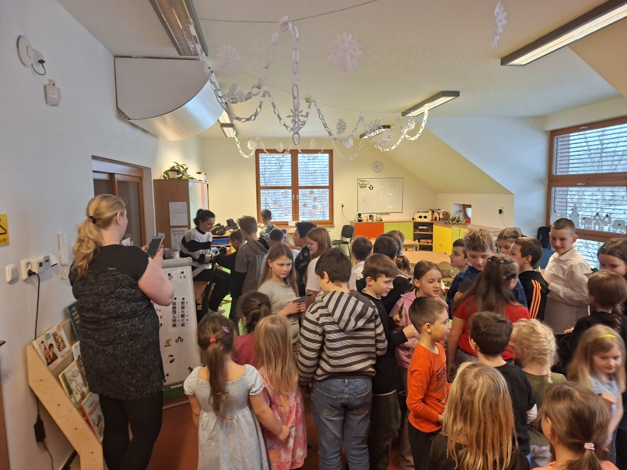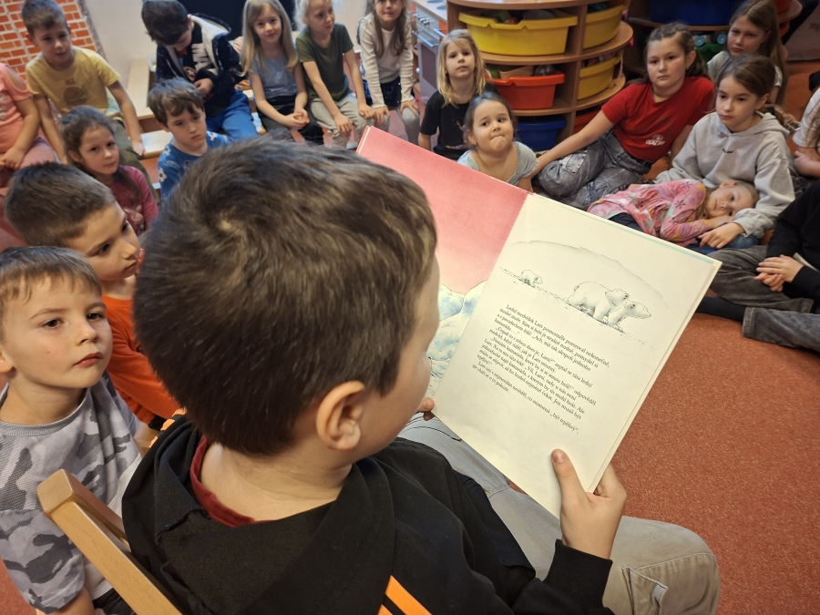 Po vzájemném přivítání se děti usadily a naši čtvrťáci postupně začali číst příběh z knížky „Lední medvídku, vezmi mě s sebou!“. Paní učitelka Renáta Dorociaková vybírala čtenáře a průběžně posluchačům ukazovala ilustrace k příběhu. Malí „delfínci“ pak školáky odměnili vlastnoručně vyrobeným tučňákem z papíru a paní učitelka měla pro ně i sladkou odměnu. Také pro nás měli připravené pěkné písničky a jednu jsme se dokonce učili společně. Děti si ještě chvíli pohrály a přišlo loučení. Ve školce následoval oběd a školáky čekalo vysvědčení.
