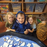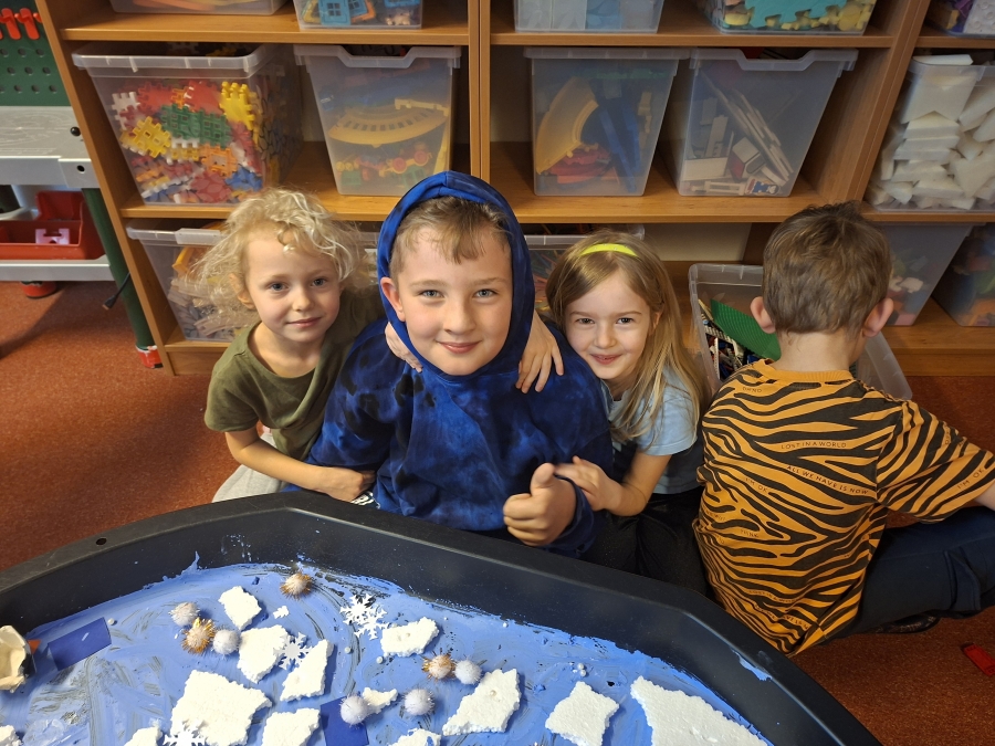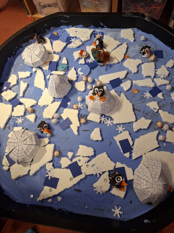 V den pololetního vysvědčení jsme místo dvou hodin výtvarné výchovy navštívili naše předškoláky v oddělení Delfínů. Naši návštěvu jsme spojili s tématem, kterému se ve školce v těchto dnech věnují – Život na dalekém severu.