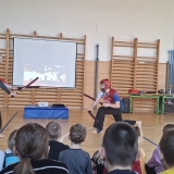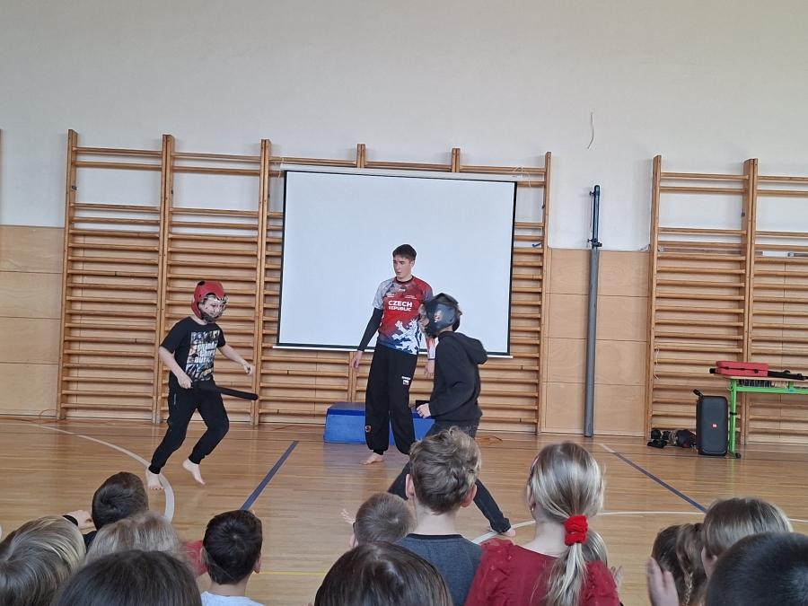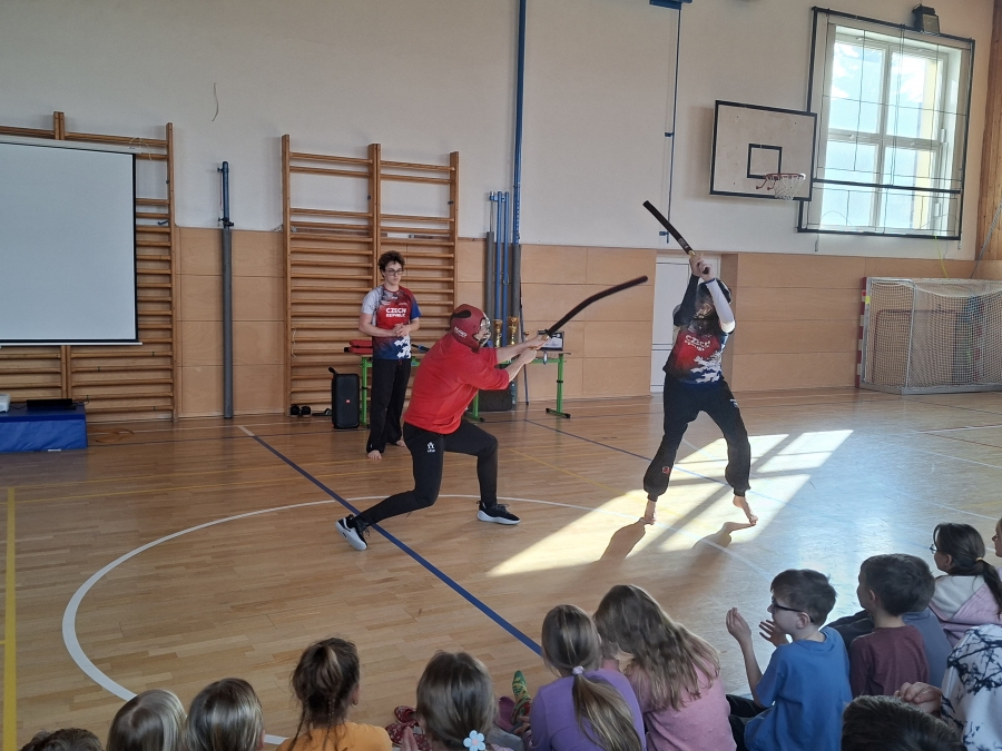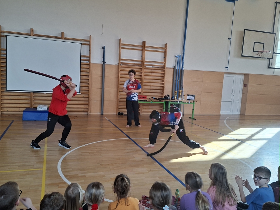 Dětem se také velmi líbily aktivity, které připravil k olympiádě školní parlament. Zaujala je ukázka japonského bojového umění našeho deváťáka i beseda s otcem hokejisty Ondřeje Paláta. Nejvíce si ale užily společné fandění Evě Adamczykové při její jízdě. A na závěr to nejlepší – v obou kolech školního vědomostního kvízu porazilo naše družstvo všechny starší žáky, za což je musíme moc pochválit a poděkovat za vzornou reprezentaci.