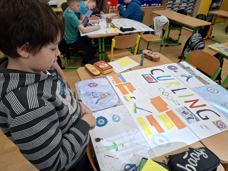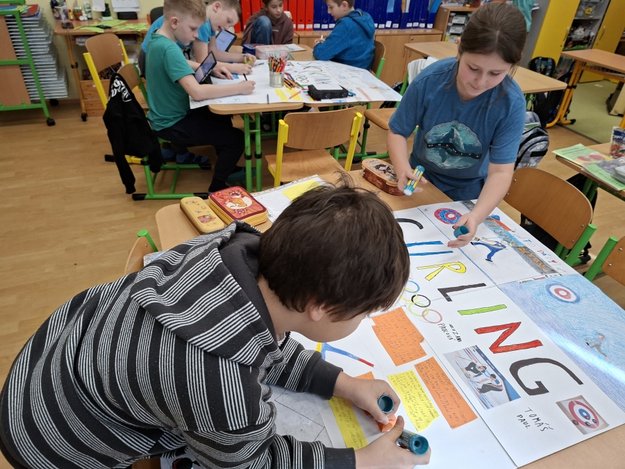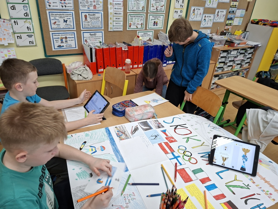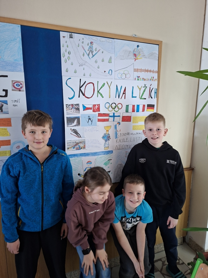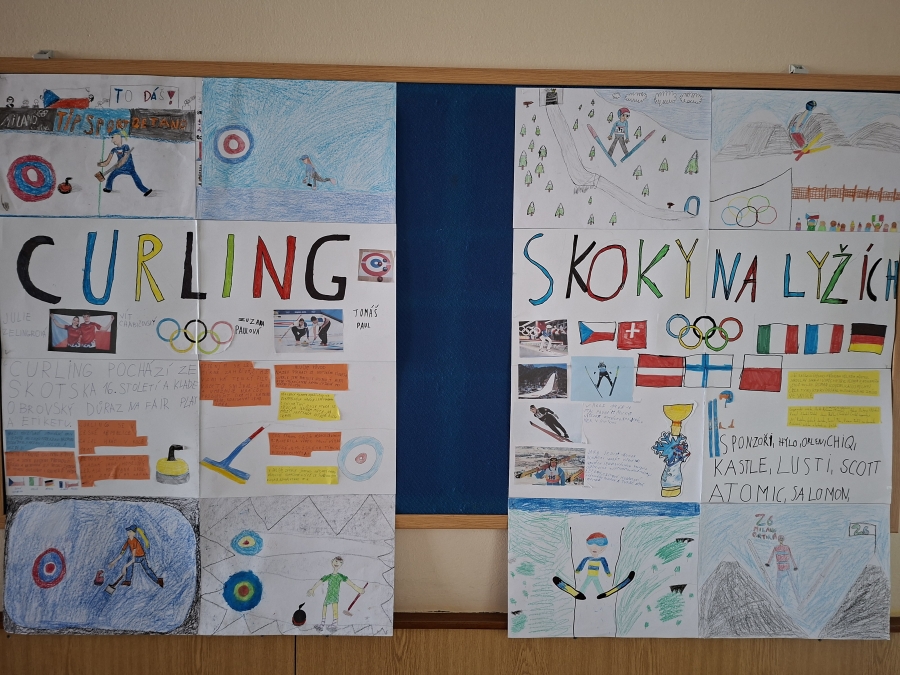 V měsíci únoru se čtvrťáci zaměřili ve výuce na letošní Zimní olympijské hry v Itálii. V českém jazyce je čekaly čtenářské lekce s tématikou historie, typickými soutěžními sporty, známými sportovci a jinými zajímavostmi. Opět si při nich procvičili týmovou spolupráci. Každý tým si vybral jeden zimní sport a zpracoval o něm velký plakát. Využít mohli kromě různých pracovních listů a obrázků také tablety k vyhledávání dalších informací a zajímavostí. V hodině pracovních činností si libovolnou výtvarnou technikou svůj vybraný sport ztvárnili. Didaktickou techniku jsme využili i zábavněji, všichni si vyzkoušeli své znalosti a svou šikovnost a postřeh i v únikové hře s touto sportovní tématikou.