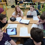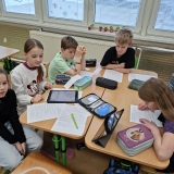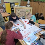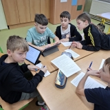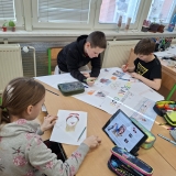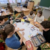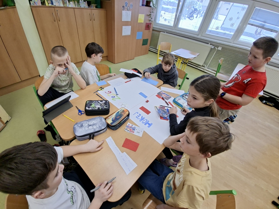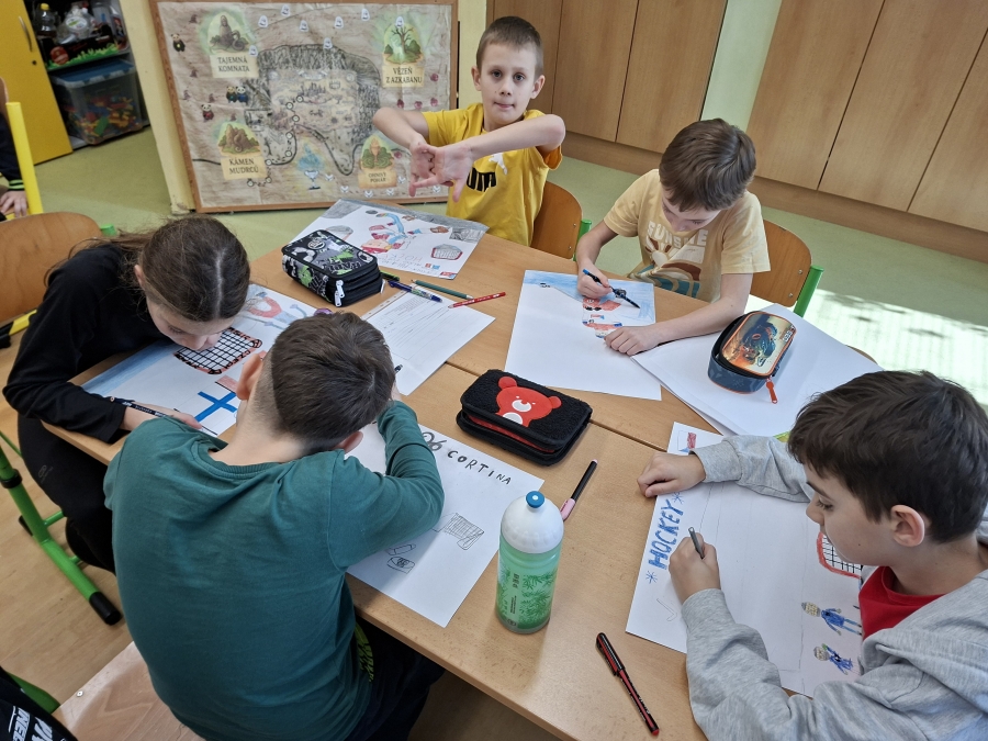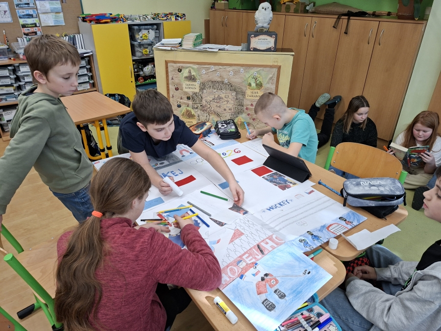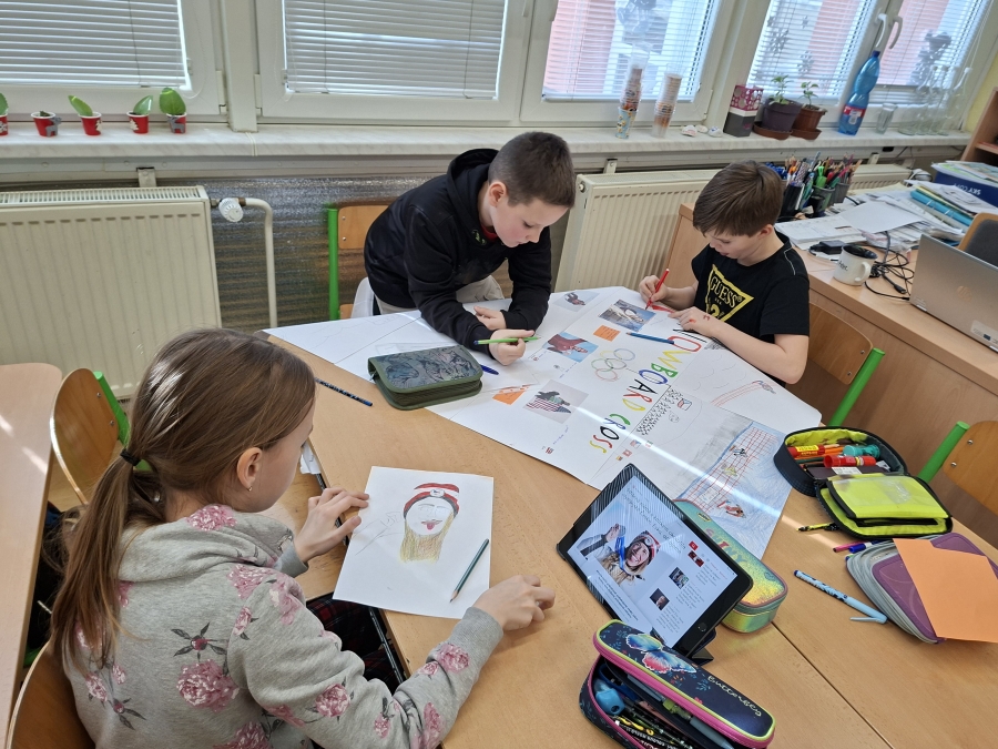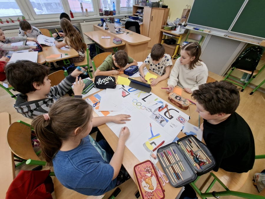 V měsíci únoru se čtvrťáci zaměřili ve výuce na letošní Zimní olympijské hry v Itálii. V českém jazyce je čekaly čtenářské lekce s tématikou historie, typickými soutěžními sporty, známými sportovci a jinými zajímavostmi. Opět si při nich procvičili týmovou spolupráci. Každý tým si vybral jeden zimní sport a zpracoval o něm velký plakát. Využít mohli kromě různých pracovních listů a obrázků také tablety k vyhledávání dalších informací a zajímavostí. V hodině pracovních činností si libovolnou výtvarnou technikou svůj vybraný sport ztvárnili. Didaktickou techniku jsme využili i zábavněji, všichni si vyzkoušeli své znalosti a svou šikovnost a postřeh i v únikové hře s touto sportovní tématikou.