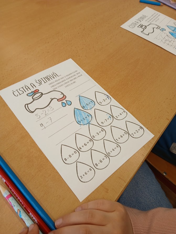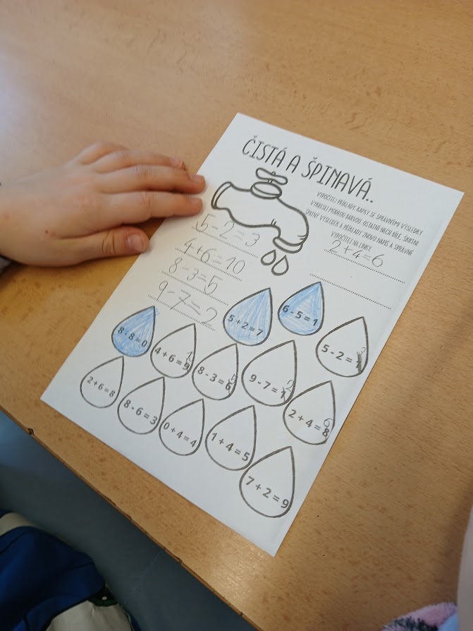 Jednou z oblíbených činností bylo kapkové počítání. Děti počítaly kapky vody, některé představovaly vodu špinavou (chybné příklady) a další kapky byly se správnými příklady jako voda čistá.