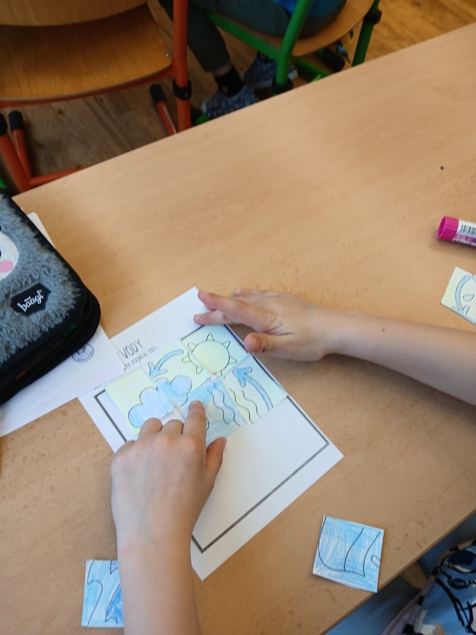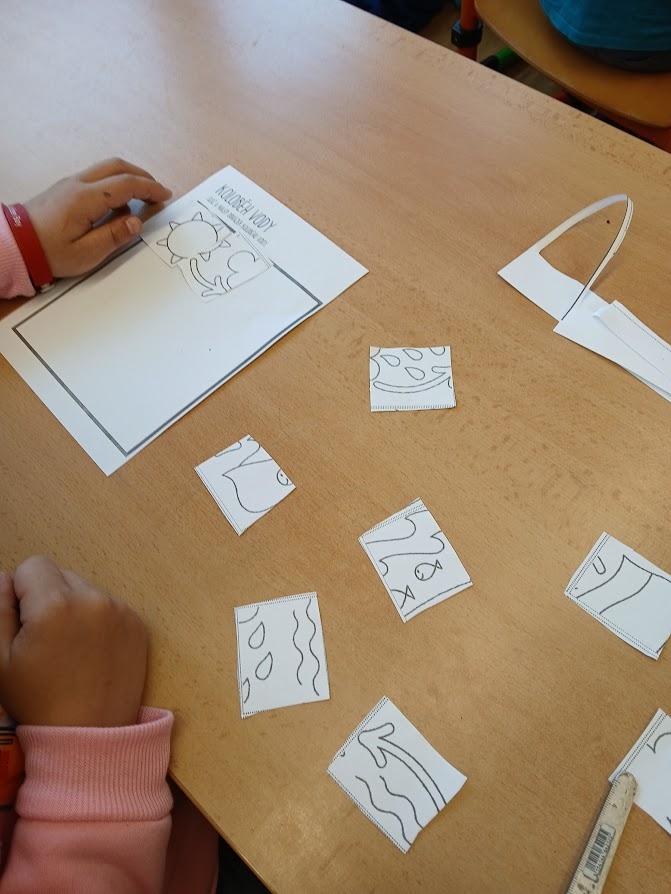 Velký úspěch mělo také puzzle koloběhu vody, při kterém děti skládaly jednotlivé části a objevovaly, jak voda koluje v přírodě.