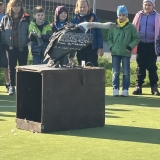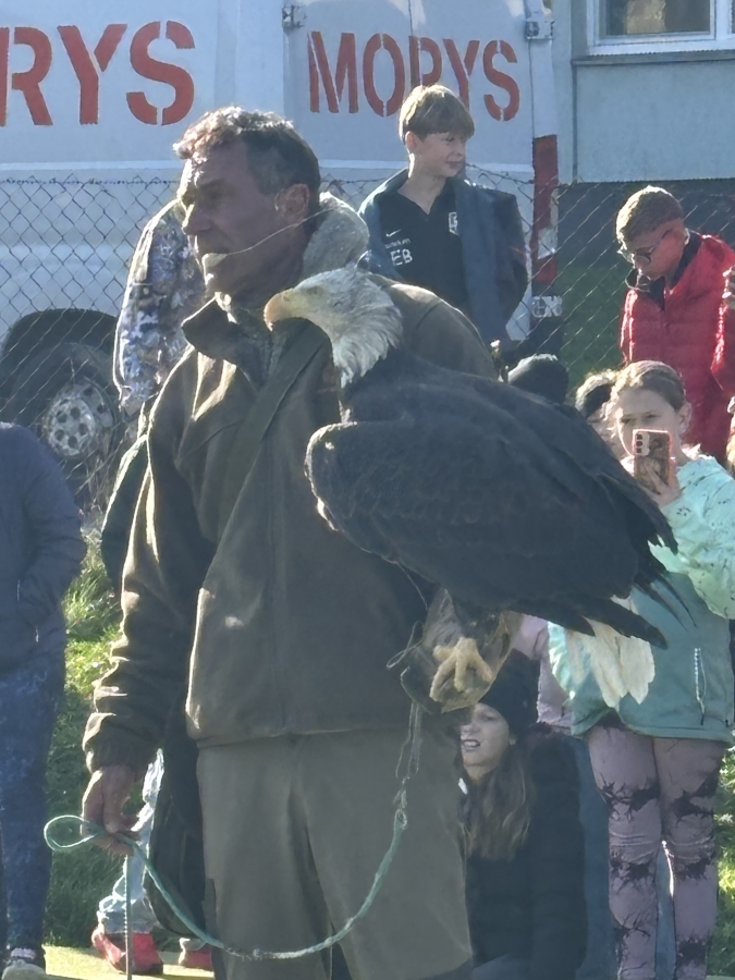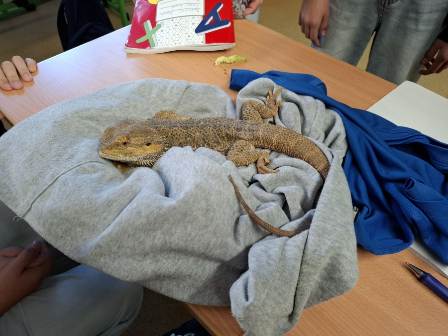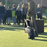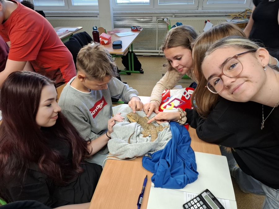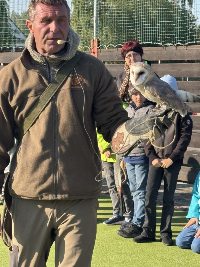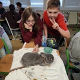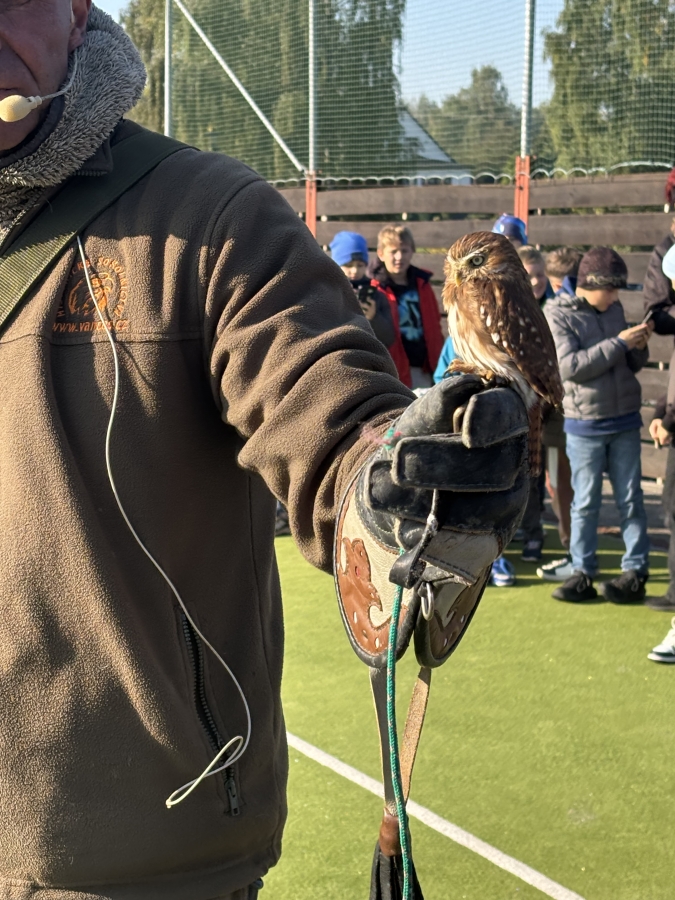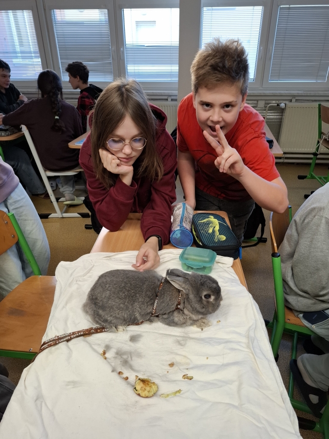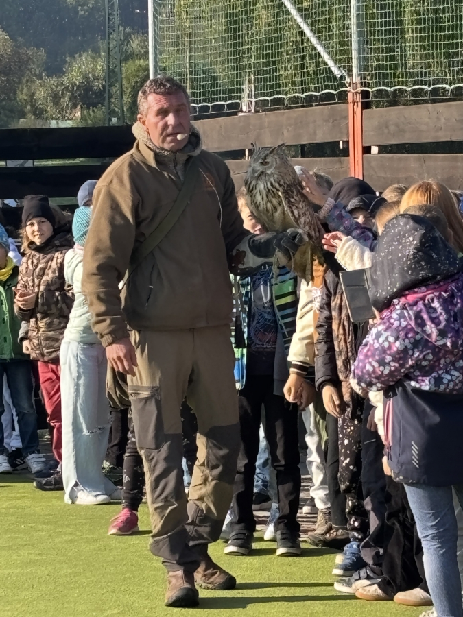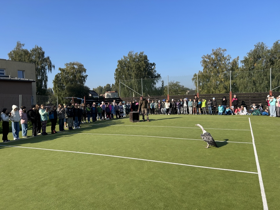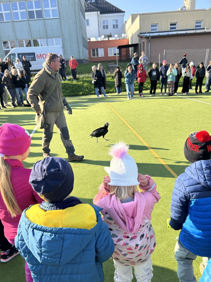 Zajímavým zpestřením byly i živé ukázky. Osmáci přivedli dva domácí mazlíčky – agamu Eddiho a králíka s velmi originálním jménem – Antonín Fenryr Šedohřbet Kousal. A to nebylo všechno – celý první i druhý stupeň si mohl užít přehlídku dravých ptáků. Děti se zblízka seznámily s orlem bělohlavým, poštolkou, supem, sokolem, sýčkem, výrem velkým i jinými dravci.