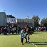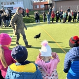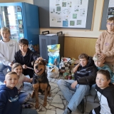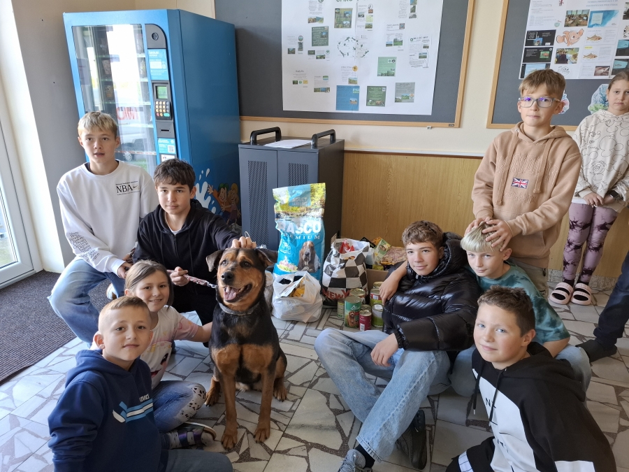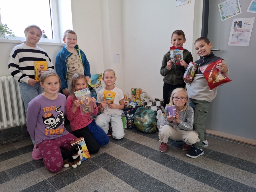 Hezkým momentem dne byla návštěva psí fenky Maggie z útulku v Sedlištích, která dorazila s paní Vinklárkovou – majitelkou tohoto zařízení. Maggie za všechny opuštěné pejsky převzala spoustu darů – granule, pamlsky i hračky, které děti po celý týden nosily do školy. Všem, kdo přispěli, patří velké díky!