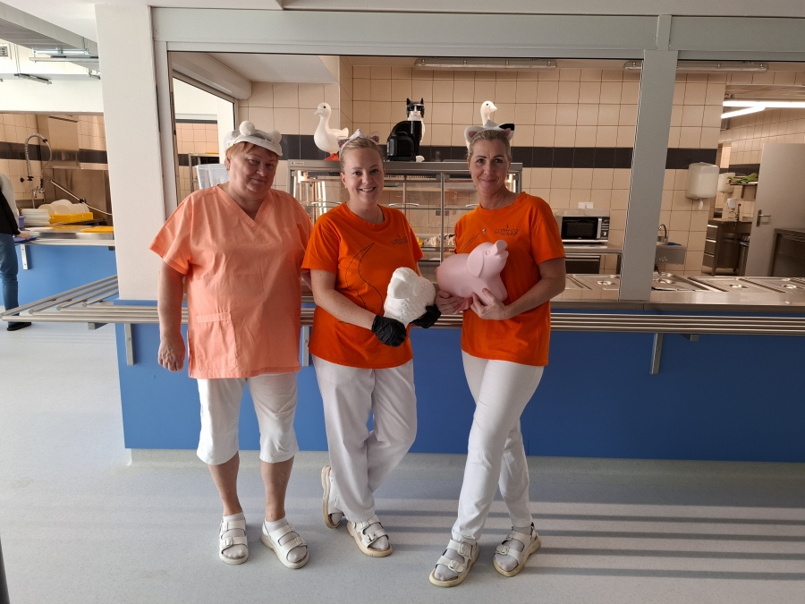A nesmíme zapomenout ani na naše skvělé kuchařky! Ty se opět aktivně zapojily – tentokrát výstavkou s tématem zvířat a zvířecími čelenkami, které rozzářily školní jídelnu.