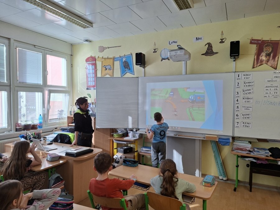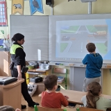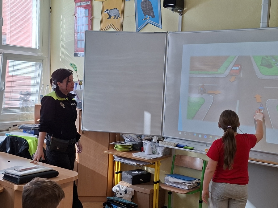 Na podzim už absolvovali úvodní seznámení a praktický výcvik na dopravním hřišti. Nyní si v jedné hodině vše procvičili a zopakovali, nezapomnělo se ani na křižovatky, které velmi často dělají dětem potíže.