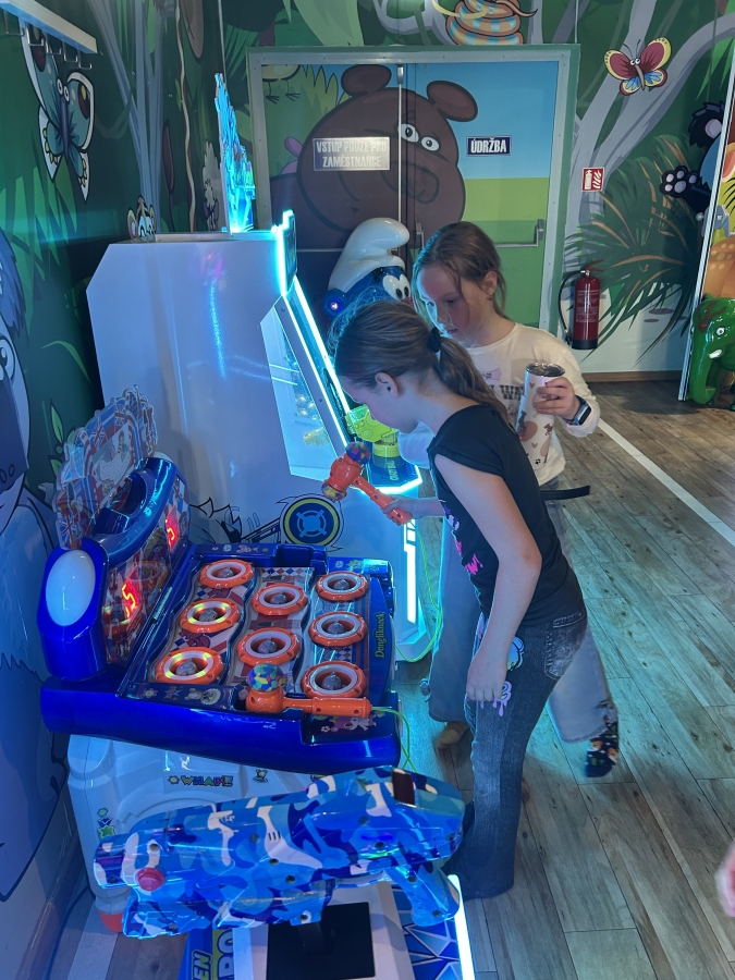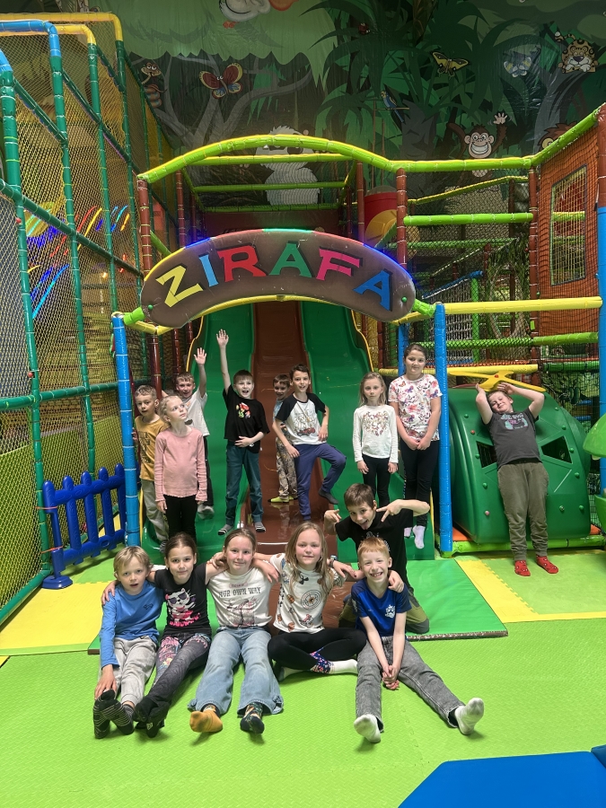 Konečně se nám podařilo, za vzorné chování a dodržování třídních pravidel, nasbírat plnou lahvičku korálků, a tak jsme za odměnu vyrazili do Ostravy do Funparku Žirafa. Někteří se těšili, protože už tam byli a věděli, co je čeká. Ti, kteří tam ještě nebyli, byli plní očekávání. Po příjezdu spadla brada i paní učitelce. Čekal nás obrovský areál plný prolézaček, různých klouzaček a tobogánů, trampolín, skákacích hradů, bazénků s kuličkami, kolotočů a dalších atrakcí, které jsme mohli všechny prozkoumat a vyzkoušet. Nevěděli jsme kam dřív a lítali z jednoho na druhé rychlostí blesku, aby nám nic neuteklo. Po třech hodinách zábavy se některým vůbec nechtělo zpátky do školy. Moc jsme si to tam užili a už vymýšlíme, kam se vydáme zase příště.
