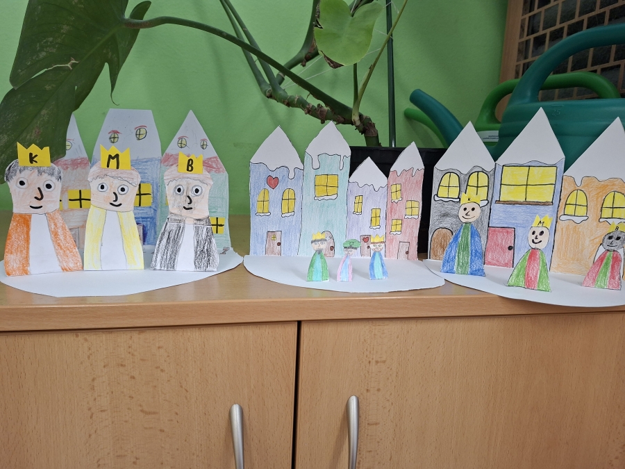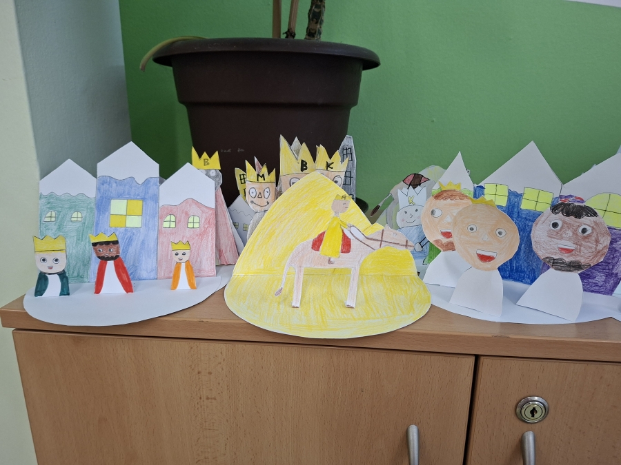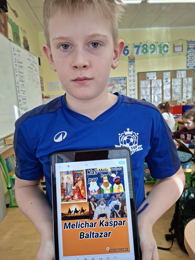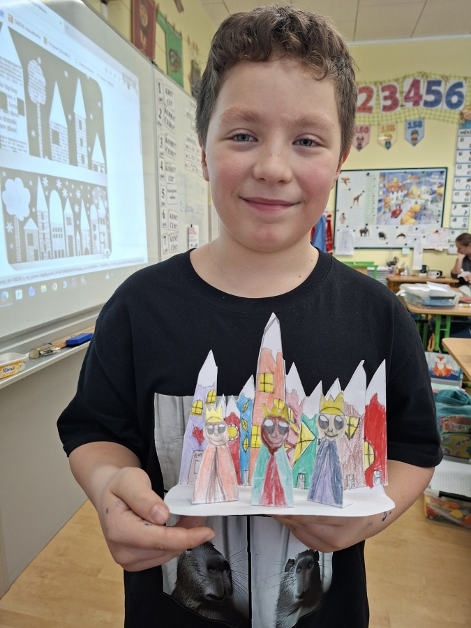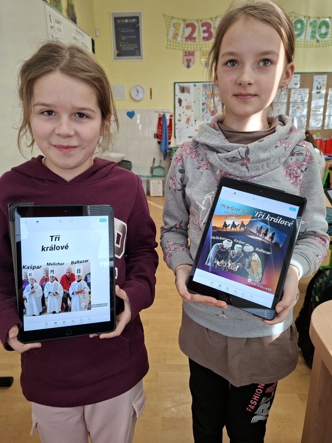 Nejdříve nás čekal třídní projekt „Tři králové“, ve kterém jsme propojili čtenářské dovednosti s digitálními. V hodinách pracovních činností jsme si nejprve vytvořili v aplikaci Piccollage plakátky a pak jsme si vyzkoušeli i vlastní zručnost a každý si vyrobil své tři krále z papíru. Součástí čtenářských dovedností byly různé kvízy a hlavolamy s tříkrálovou tématikou.