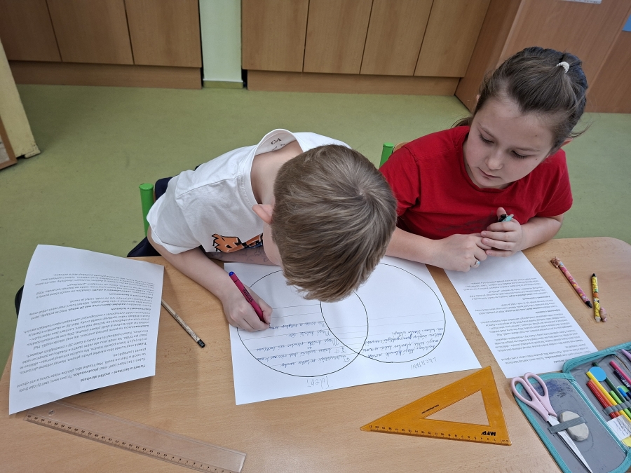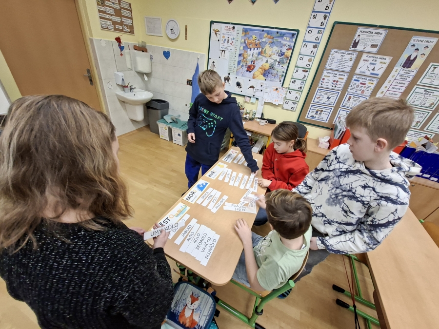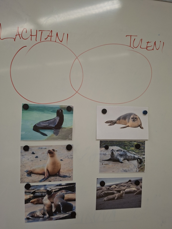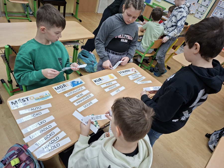 V hodinách českého jazyka jsme se celý leden věnovali vzorům středního rodu, proto jsme si zkoušeli různě třídit podstatná jména ve skupinách i samostatně. Ve čtení následovala čtenářská lekce Tuleni a lachtani, kde jsme si opět vyzkoušeli metodu Vennových diagramů k porovnání obou živočichů.