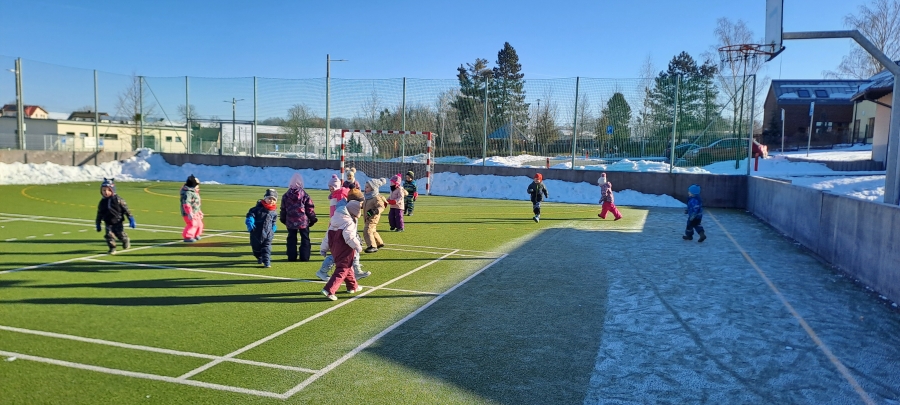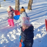 Nechyběly ani zimní radovánky venku. Děti si užily bobování, stavění sněhuláka a bruslení. Navštívili jsme ledovou plochu, kterou pro obec připravili místní dobrovolní hasiči.