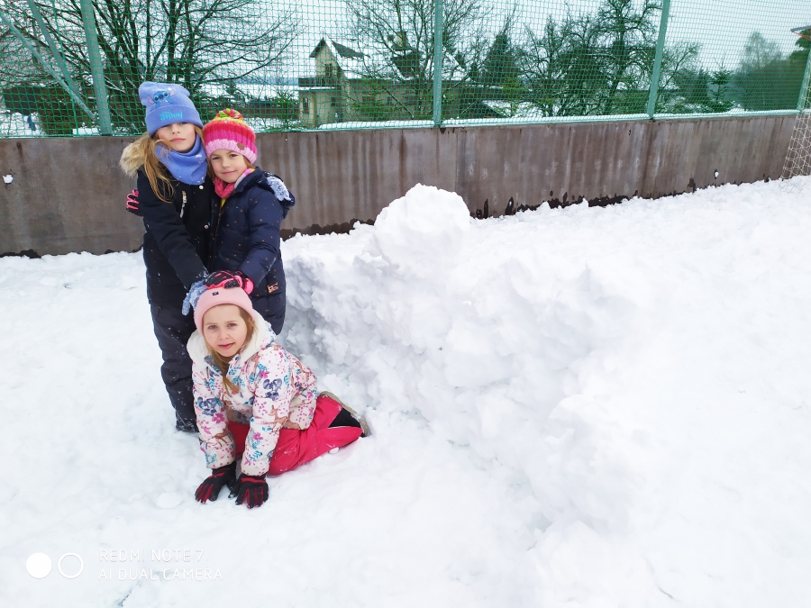 Všichni jezdili na lopatách a bobech, budovali sněhové stavby a hráli honičky ve sněhu.