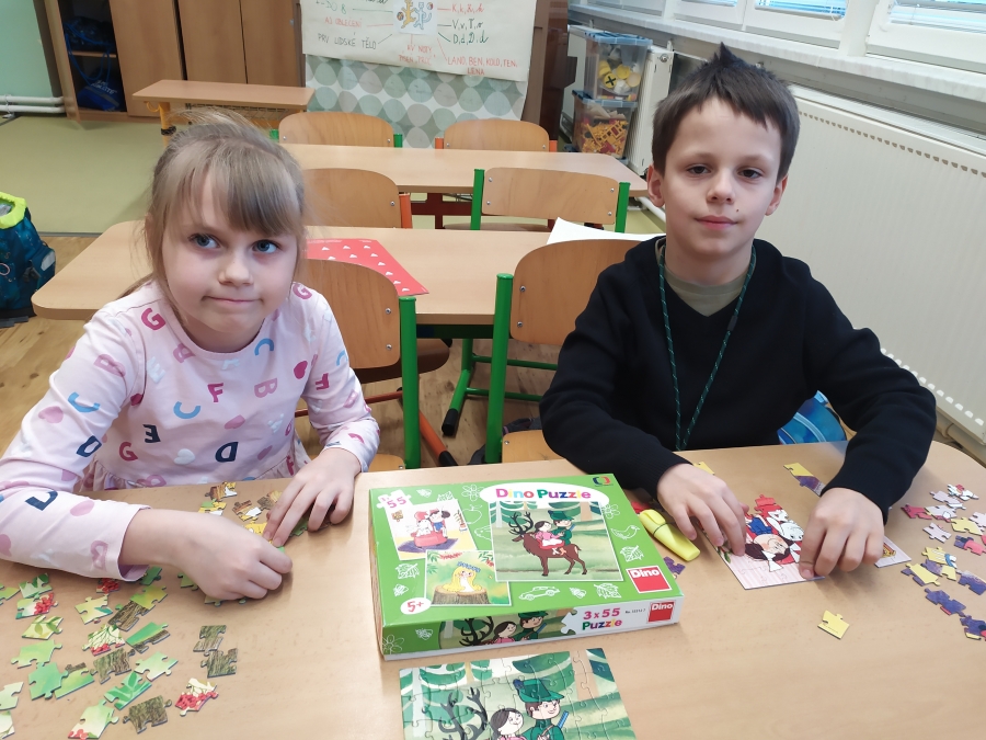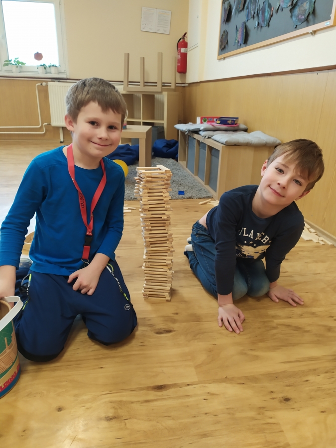 Ve školní družině měly děti prostor na hraní, stavění ze stavebnic i dřevěných kostek, skládání puzzlí, malování a vyrábění.