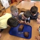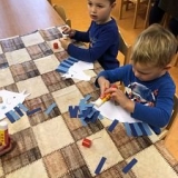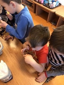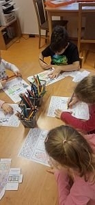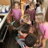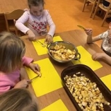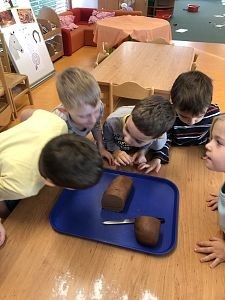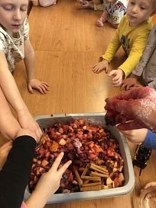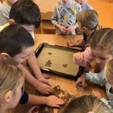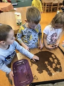 Mimo to jsme si povídali o životě v lese. Jaké druhy stromů máme, jak strom roste, jak je rozlišujeme, proč jsou pro člověka stromy důležité a k čemu slouží. O zvířátkách, která se připravují na zimní období a jak je pro ně asi těžké přežít zimu, když jsou venku. Zahráli jsme si na vypravěče, když jsme vyprávěli pohádku O perníkové chaloupce. Byla ze stejného perníku, jako ty, co jsme pekli. Vyrobili jsme si chaloupku i loutky na špejli a vše jsme si mohli vzít domů, abychom mohli pohádku zahrát i rodičům. V pohádce jsme zabývali také emocemi, které jednotlivé postavy mohly cítit. Zjistili jsme, že vše mohlo být úplně jinak a ježibaba vlastně vůbec nemusela být zlá. Možná se jen se mohla bát, že by jí Jeníček s Mařenkou ukradli střechu a zničili tak domeček.