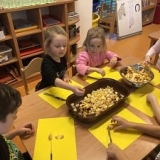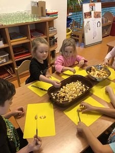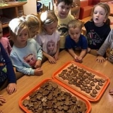 Listopad se nesl v duchu příprav na školní jarmark. Výrobky, které jsem s paní učitelkami i rodiči vyrobili, naše paní učitelky prodají a za utržené peníze nám koupí nějaké překvapení. V rámci příprav se z nás stali natěrači při natírání šišek, švadleny a krejčí při výrobě čepiček pro skřítky, pekaři a pekařky při pečení perníčků a kuchaři a kuchařky při přípravě pečeného čaje. Vše, co se dalo jíst nebo pít, jsme pochopitelně ochutnali, abychom věděli, jak se nám to povedlo.