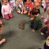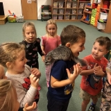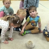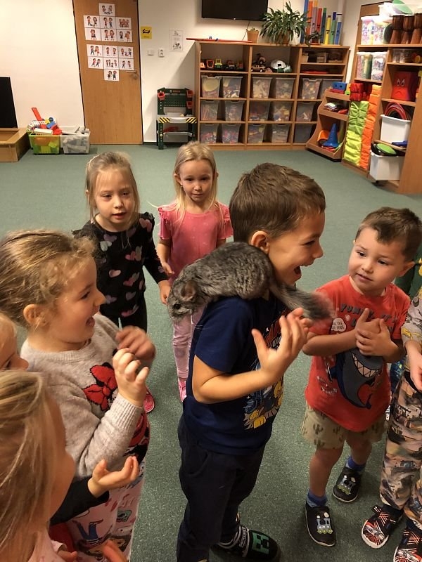 A skutečně. V tento den nás postupně ve všech třech odděleních navštívila paní Denisa, ambasadorka zájmového sdružení Neposedné tlapky se svými zvířátky. Přivezla jich s sebou hned sedm. Děti se tak seznámily s želvákem Žofíkem, který se hned hladově pustil do nabídnutého jablíčka. Bezsrstý potkan Nina byl velmi přítulný, na rozdíl od králíčka Lili. Ten měl hebkou huňatou srst, ale raději si zalezl do koutku, kde se nechal hladit. Morče Bertík a činčilu Miu si musel oblíbit snad každý. Raritou byl bílý ježek Pepík, který se sbalil do klubíčka a my jsme čekali, až se v klidu a tichu rozbalí a ukáže nám svůj roztomilý čumáček. No, neukázal. Nakonec jsme všechna zvířátka zavřeli do přepravek a vypustili rychlého dravce, fretku Ori. Té se mezi dětmi líbilo a pěkně se předváděla. Stejně jako všechna zvířátka, i ona byla vypuštěna volně do třídy a každý si s ní mohl pohrát. Některé děti toho využily, jiné zvědavě pokukovaly z náruče paní učitelky, všechny se ale dobře bavily. Během návštěvy nám paní Denisa vyprávěla o zajímavostech ze života zvířátek a o jejich veselých kouscích. Má to z první ruky, všechna zvířátka (a mnoho dalších) s ní totiž žijí u ní doma. V Neposedných tlapkách se pak stará o zatoulané psy a kočičky, které žádný domov momentálně nemají. Aby jim bylo veseleji, naše děti pro ně přinesly plno jedlých dárečků, které jsme rádi předali. Moc děkujeme paní Denise za zábavnou a současně poučnou návštěvu a rodičům za spolupráci.