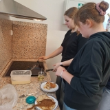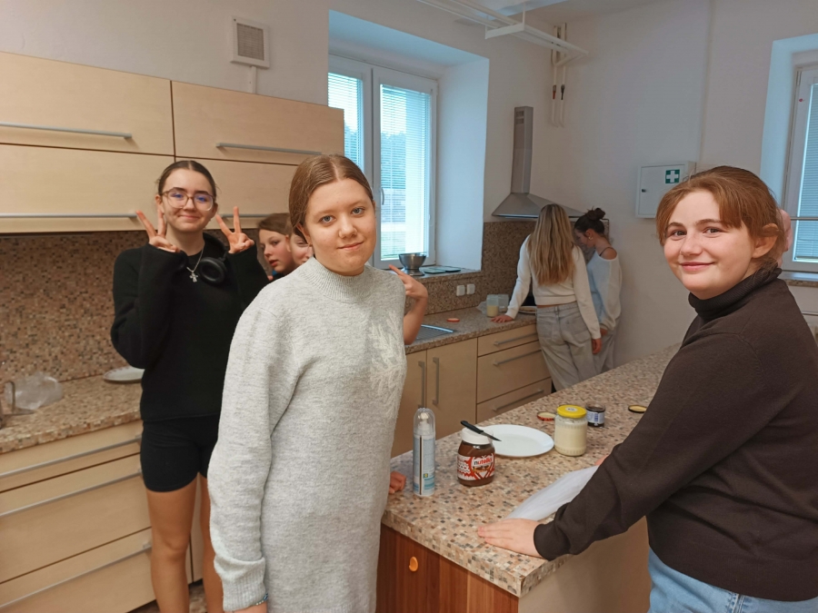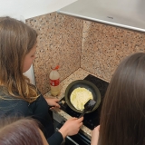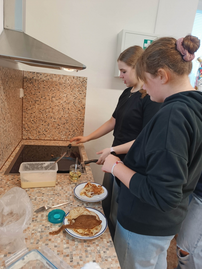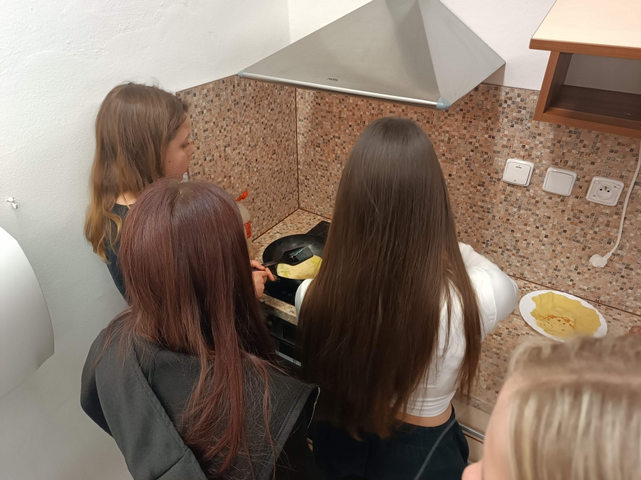 Na chvíli se naše školní kuchyňka proměnila v malou palačinkovou dílnu! Holky z osmé třídy se pustily do přípravy sladkých palačinek, a výsledkem byla chuťová paráda, která všechny potěšila.