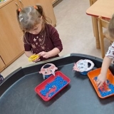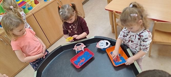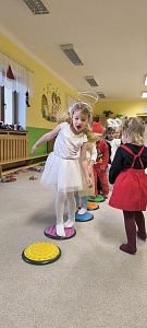 V tématu pokračoval i pohyb – čertí závody, překážkové dráhy, honičky, zdravotní cvičení s peříčkem nebo grafomotorické cvičení „bruslení“ na zamrzlých kalužích.