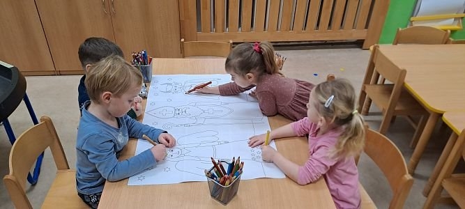 Děti pracovaly na zdobení perníčků, vyrábění papírových baněk, tvoření čertíků kombinovanou technikou a vytváření malovaných betlémů. Nechybělo stříhání čertovského řetězu, zdobení andělských šatů ani velká společná omalovánka. Cílem bylo procvičit jemnou motoriku, soustředění a představivost.