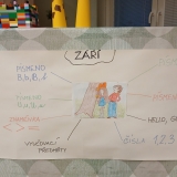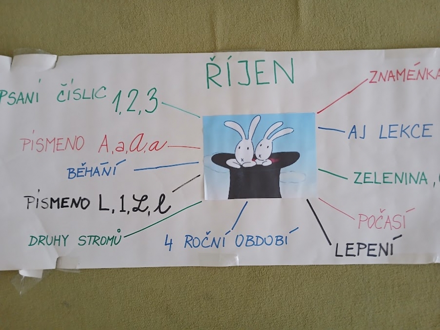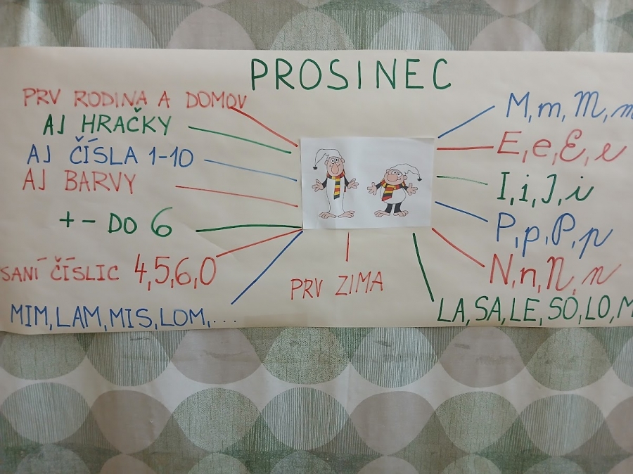 Během celého pololetí jsme si tak každý měsíc vytvářeli společnou mapu pokroku (i společně s pohádkovou bytostí). Na této mapě tak děti s přehledem viděly, co vše za měsíc zvládly.