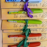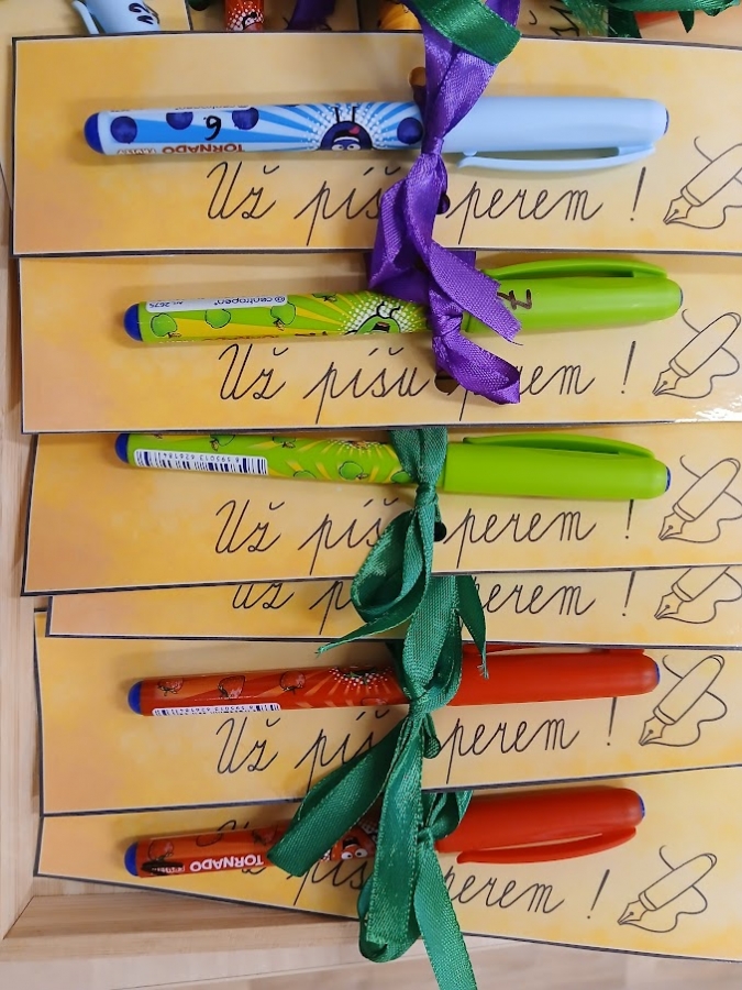 S vysvědčením bylo dětem také předáno pero – důkaz jejich pokroku v psaní.