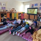 Děti přišly v pohodlných pyžamech, županech i s oblíbenými plyšáky a hned od začátku panovala skvělá atmosféra.