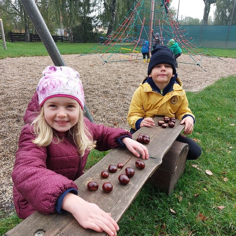 Sbírali jsme listy, kaštany a žaludy při vycházkách do parku