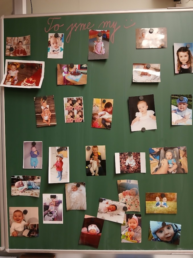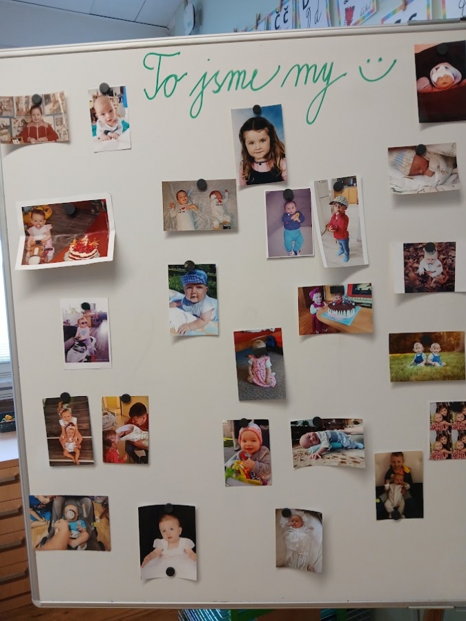 Každý prvňáček a také paní učitelky si přinesly fotky z doby miminkovské a školkové.