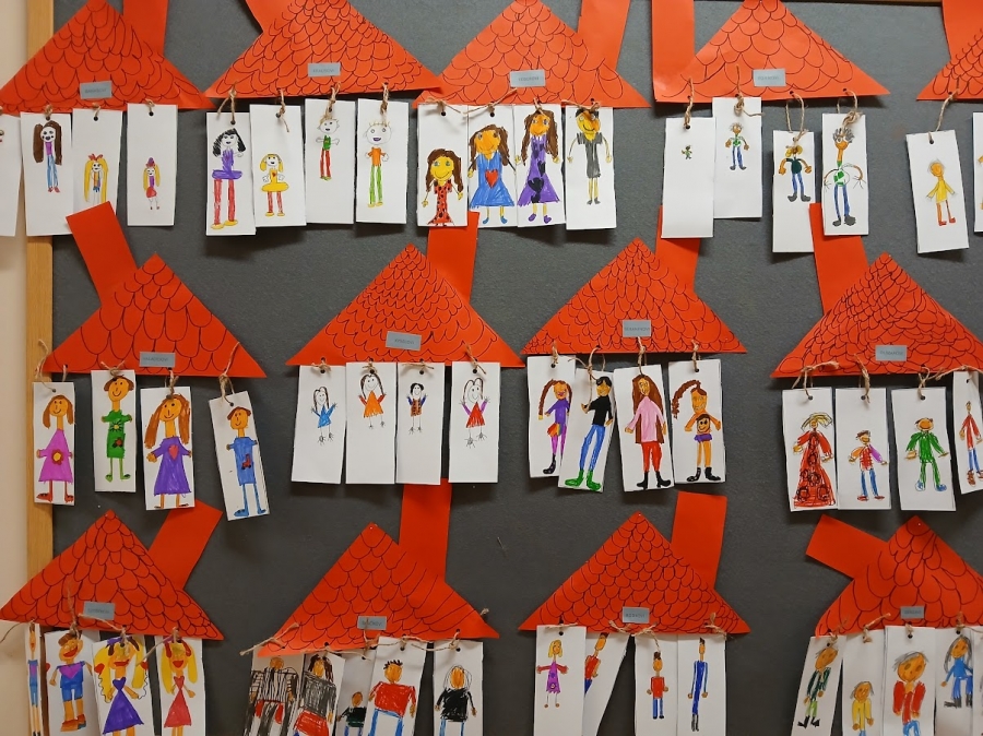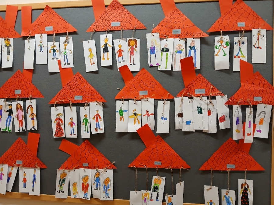 V pracovních činnostech a výtvarné výchově si děti vyrobily svůj rodokmen. Ten se skládá z dětí + rodičů.