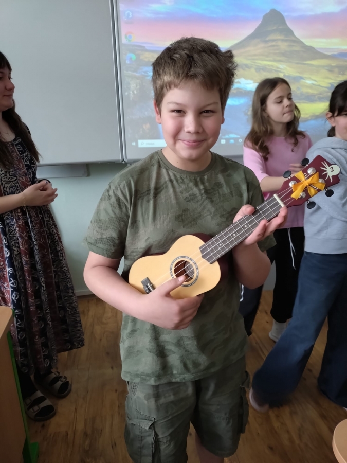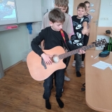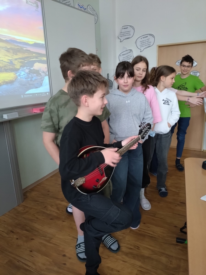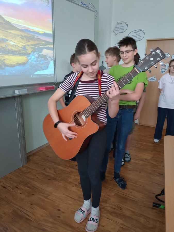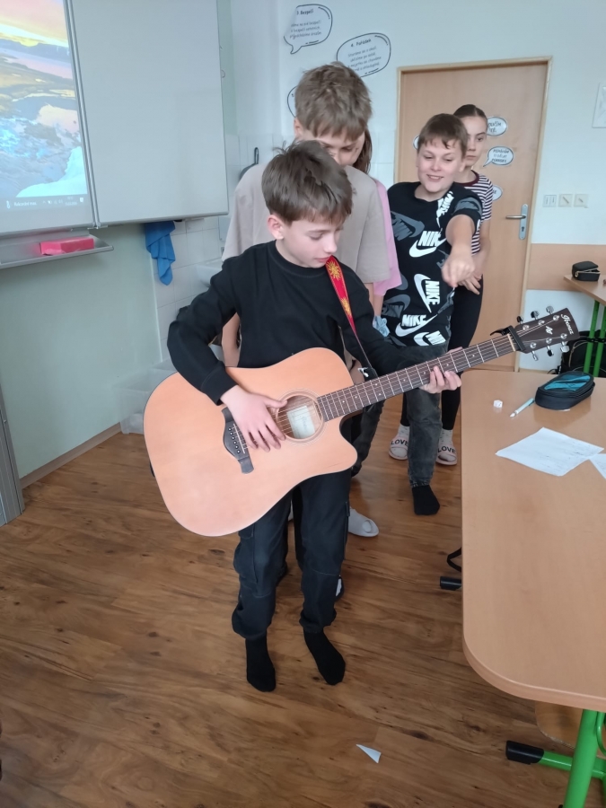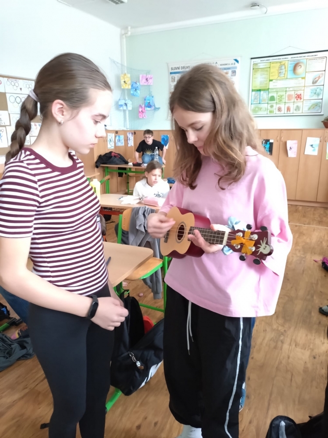 V uplynulých hodinách hudební výchovy jsme v šesté třídě opakovali téma hudebních nástrojů. Připomněli jsme si čtyři hlavní skupiny hudebních nástrojů, tedy strunné, dechové, bicí a elektronické. Na některé ze strunných nástrojů si žáci mohli vyzkoušet hrát a moc se jim to.