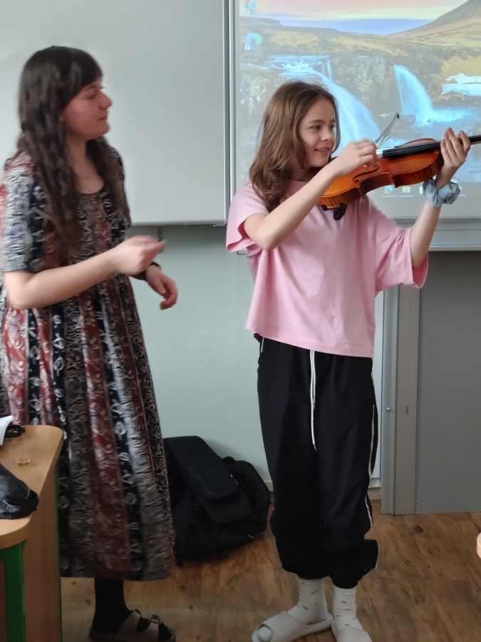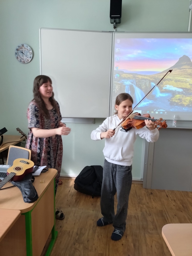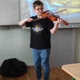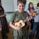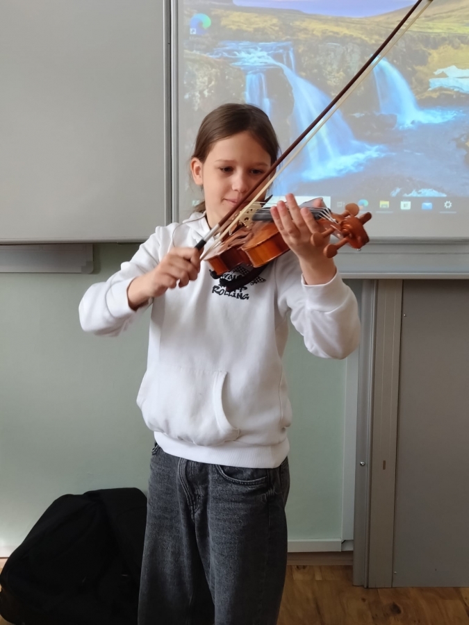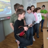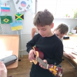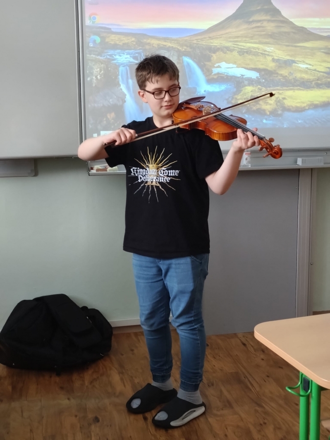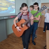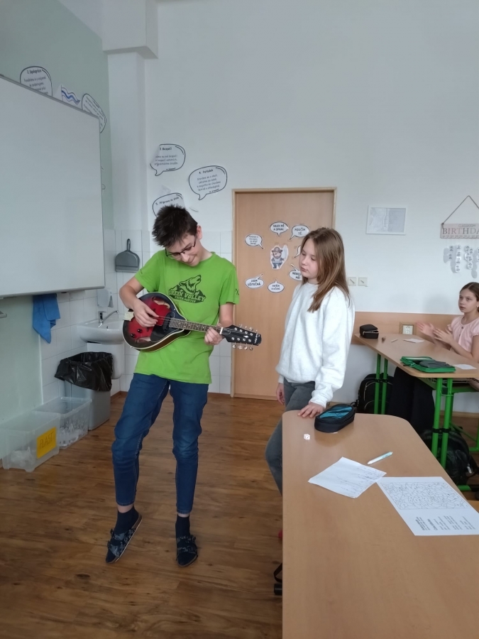 V uplynulých hodinách hudební výchovy jsme v šesté třídě opakovali téma hudebních nástrojů. Připomněli jsme si čtyři hlavní skupiny hudebních nástrojů, tedy strunné, dechové, bicí a elektronické. Na některé ze strunných nástrojů si žáci mohli vyzkoušet hrát a moc se jim to.