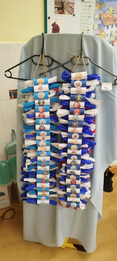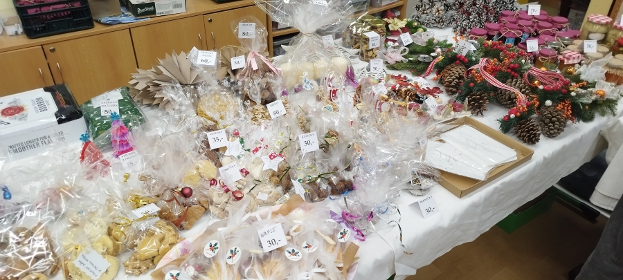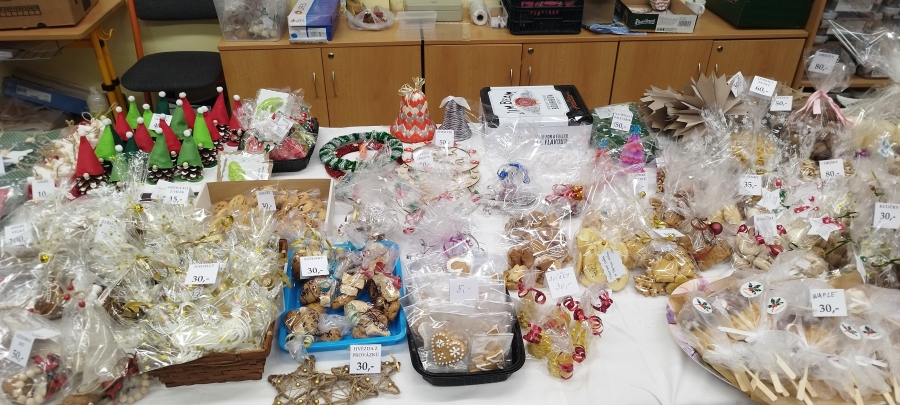 Rodiče se letos opravdu překonali. Díky nim jsme ve stánku měli taky domácí perníčky a další sladké i slané dobroty, malé skleničky domácího pečeného čaje,šité čelenky, adventní věnce a dokonce i voňavé sáčky s levandulí. Nejenže to krásně doplnilo dětské výrobky, ale hlavně se ukázalo, jak úžasně dokáže naše MŠ fungovat jako jeden tým.