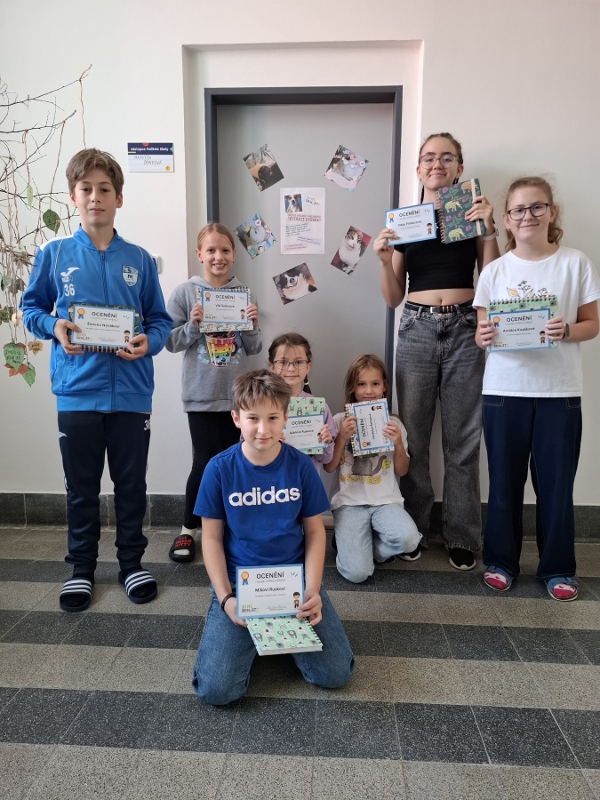 Školní parlament ocenil tyto žáky za jejich nápaditost a smysl pro humor. Jednalo se o Gábinku Ruskovou, Míšu Ruska, Kačku Mikolášovou, Viki Šoltisovou, Vendulku Šoltisovou, Šimona Nováka, Naty Pindurovou a Amálku Kozákovou. Všichni získali drobné odměny a jejich příspěvky si můžete prohlédnout níže.