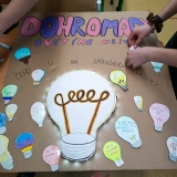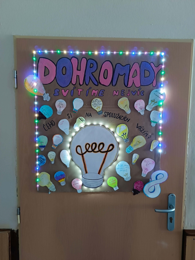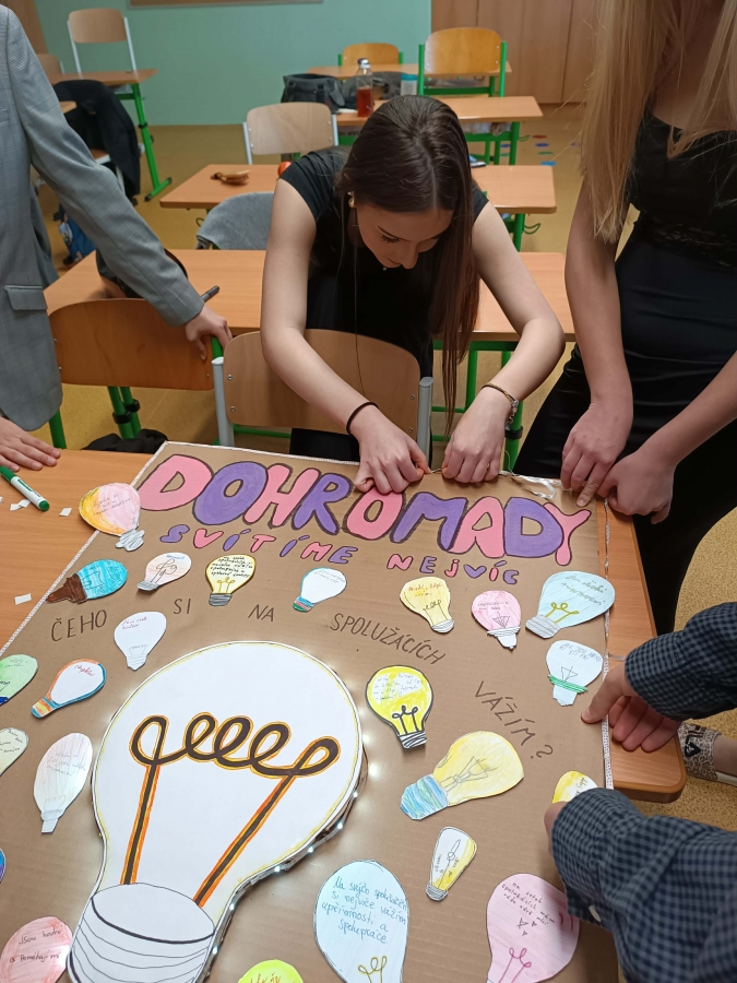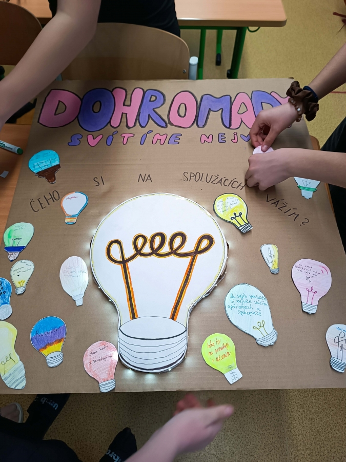 Čeho si na tobě vážím? Hlavním motivem se staly papírové žárovky. Každý žák měl za úkol napsat na svou žárovku, čeho si nejvíce cení na svých spolužácích. Na plakátu se tak objevily vzkazy plné uznání za upřímnost, ochotu pomoci nebo smysl pro humor.