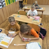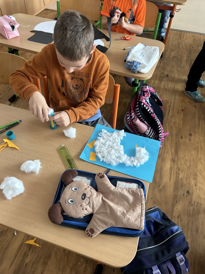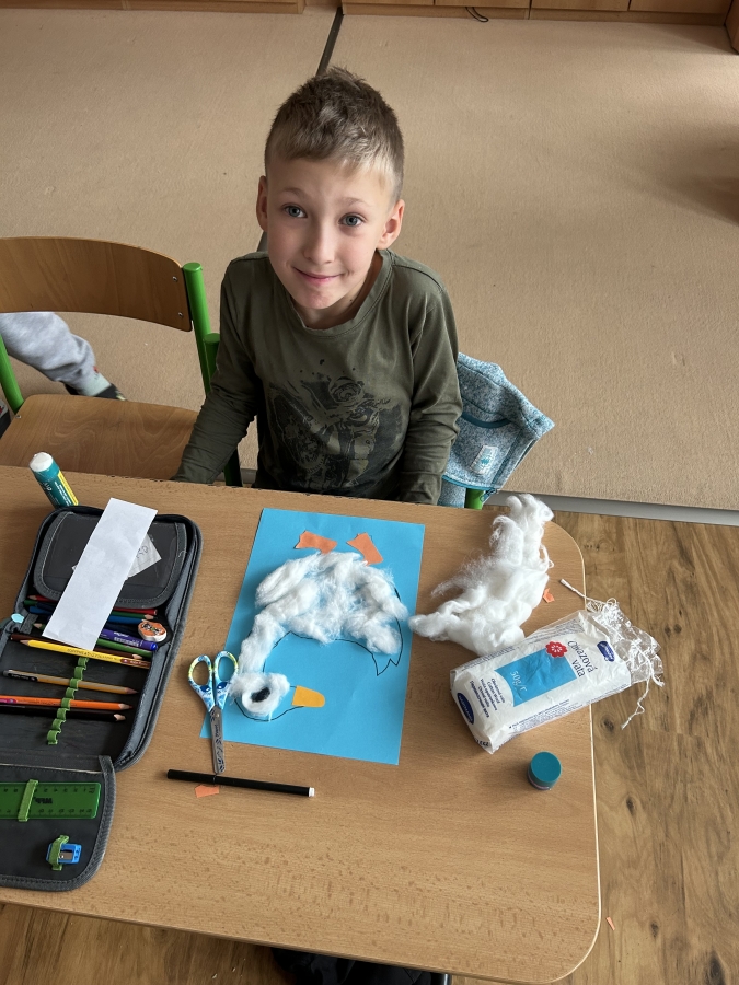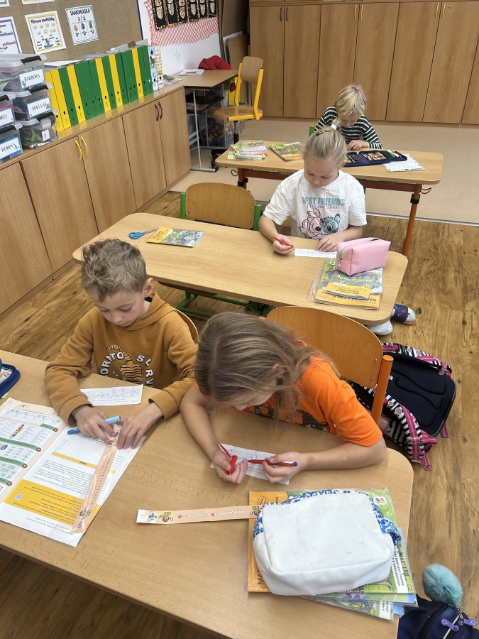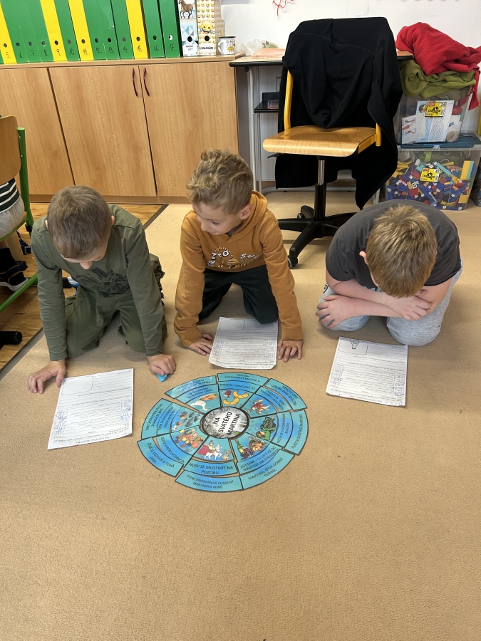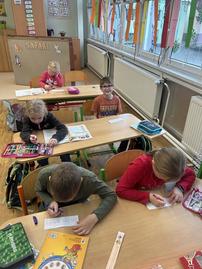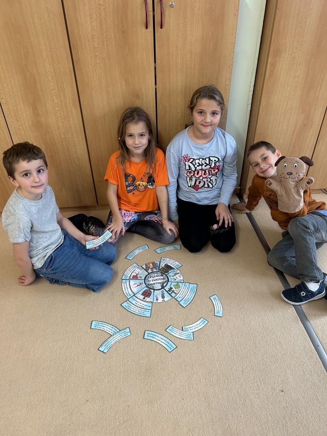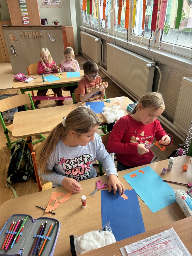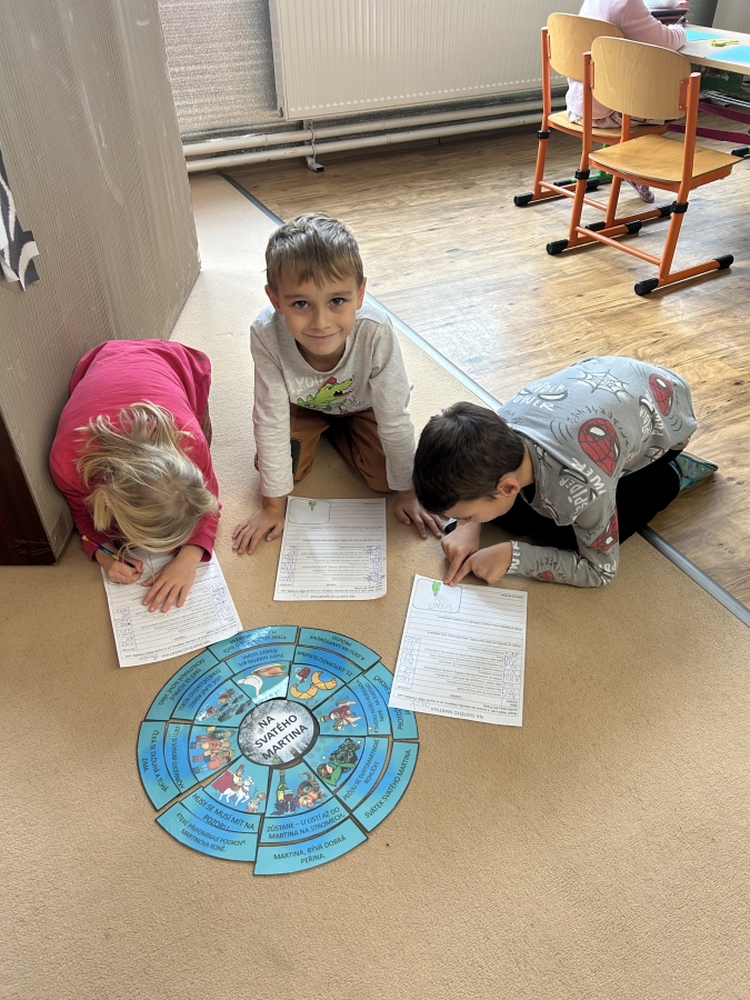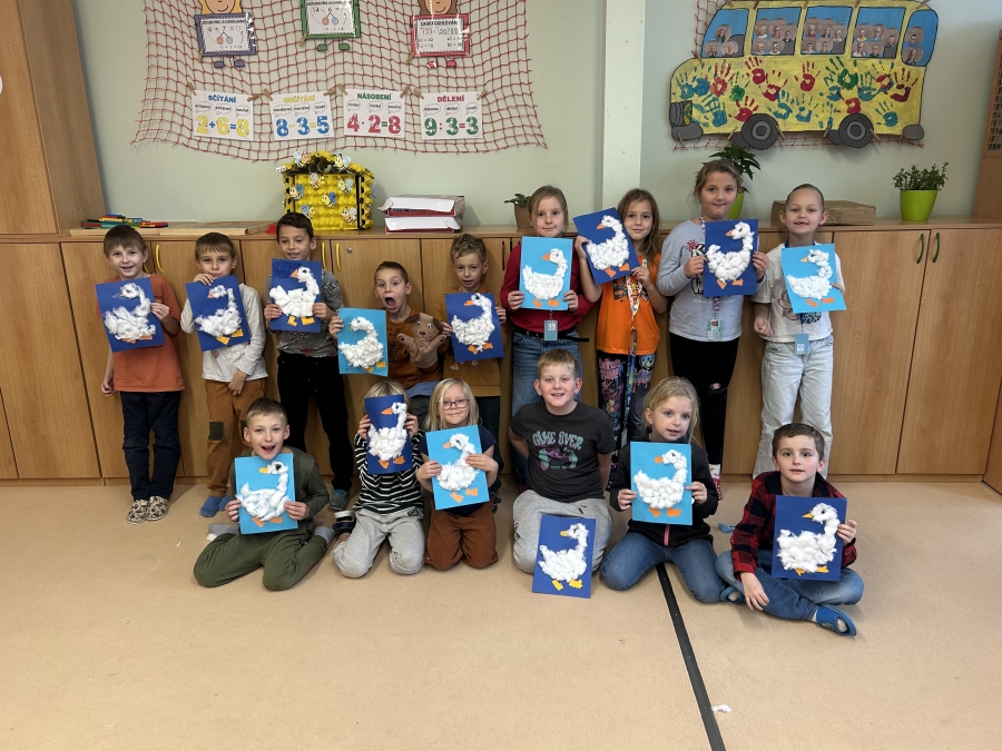 V úterý 11.11. jsme nadějně očekávali Martina na bílém koni, ale bohužel se nedostavil. Nás to však neodradilo a na jeho počest jsme si udělali projektový den. V českém jazyce jsme začali pracovním listem. Našim úkolem bylo přečíst si tvrzení a odpovědět ano nebo ne podle toho, co si myslíme. Po čtení jsme se rozdělili do skupin a skládali jsme legendu o svatém Martinovi. Dozvěděli jsme se spoustu zajímavých informací. Nakonec jsme si vzali znovu pracovní list a ve skupince jsme vyhledávali tvrzení ve své skládance. Rozhodovali jsme, zda jsou tvrzení pravdivá, či ne. Své odpovědi jsme posléze vyhodnotili společně se všemi skupinkami a porovnávali jsme své shody a neshody před a po čtení legendy. V matematice nás čekala svatomartinská běhačka. Dostali jsme tabulku s různými symboly a našim úkolem bylo, všechny kartičky s danými symboly najít, vypočítat a zapsat do tabulky. V pracovních činnostech jsme si z vaty vytvořili svatomartinské husy, které nás teď každý den z nástěnky pozorují.
