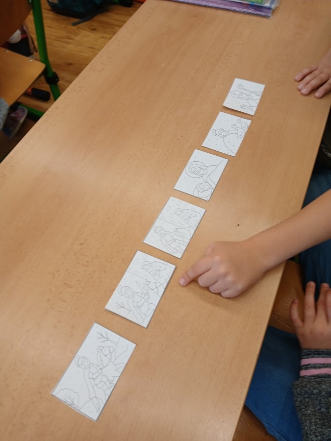 Nejdříve jsme si příběh přečetli a pak děti sestavovaly obrázkovou osnovu života Martina.