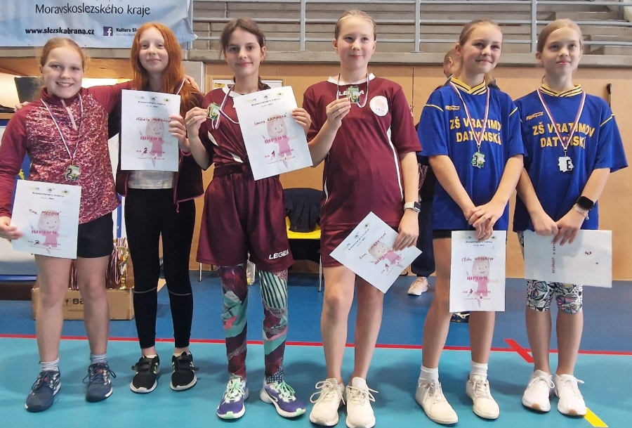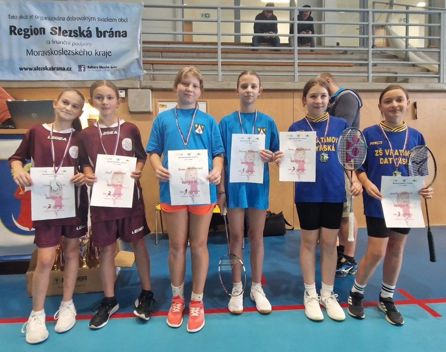Badmintonová soutěž byla určena dvojicím ze 4. až 6. tříd a hrála se samostatně v kategorii dívek a chlapců. Do turnaje se zapojilo celkem 28 dvojic a naše škola si v této konkurenci vedla výborně. V dívčí kategorii zvítězila dvojice Laura Kaminská a Ema Lumbertová, druhé místo obsadily Viktorie Búlik a Nikol Hanáková. Úspěšní byli také chlapci – Matyáš Filip a Eliáš Mika získali krásné třetí místo. Těsně pod stupni vítězů skončily Amálie Kozáková a Tereza Nitrová, které vybojovaly čtvrté místo.