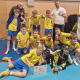 Florbalový turnaj určený pro žáky 1. stupně byl rozdělen do dvou skupin, ve kterých se utkaly čtyři týmy systémem každý s každým. Následně dva nejlepší celky z každé skupiny postoupily do semifinále. Za naši školu nastoupil tým ve složení brankář Šimon Novák a hráči v poli Marek Fajkoš, Dominik Szostek, Maxmilián Hvolka, Šimon Špaček, Štěpán Strnad, Štěpán Prokop, Šimon Glogar, Oliver Polach, Michal Rusek a Matouš Pírek. Naši florbalisté předváděli od začátku turnaje velmi jisté výkony a svou základní skupinu ovládli bez jediné porážky. V semifinále si poradili se ZŠ Vratimov – Masarykovo náměstí a ve finále, které bylo reprízou loňského souboje, porazili také ZŠ Raškovice. Díky tomu si odvezli zasloužené první místo a zlaté medaile.