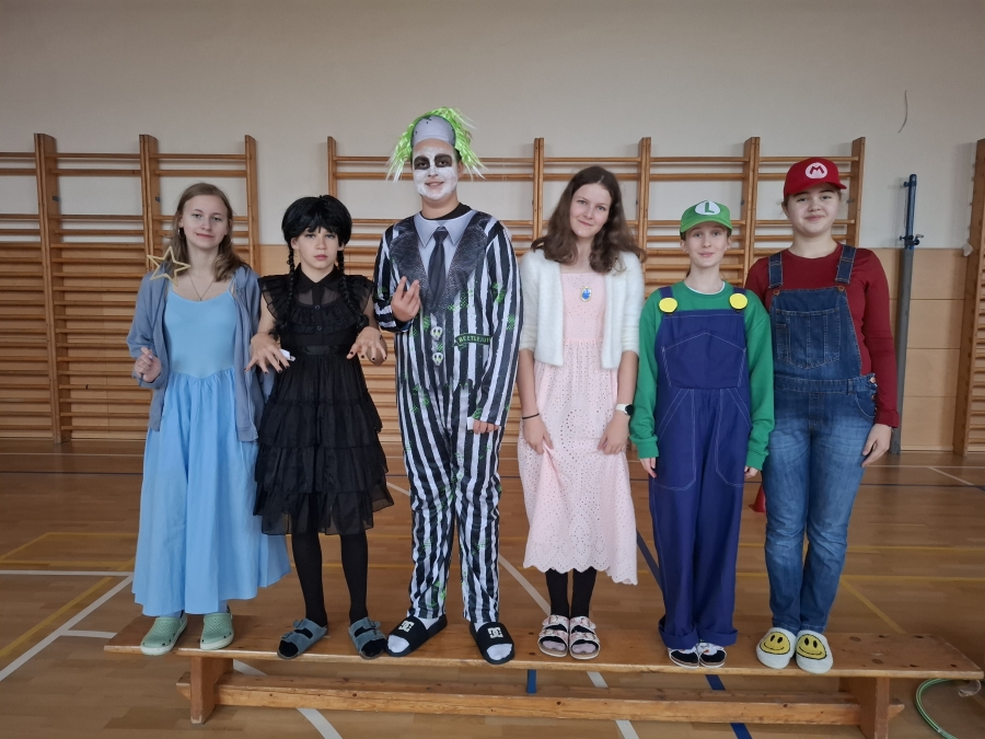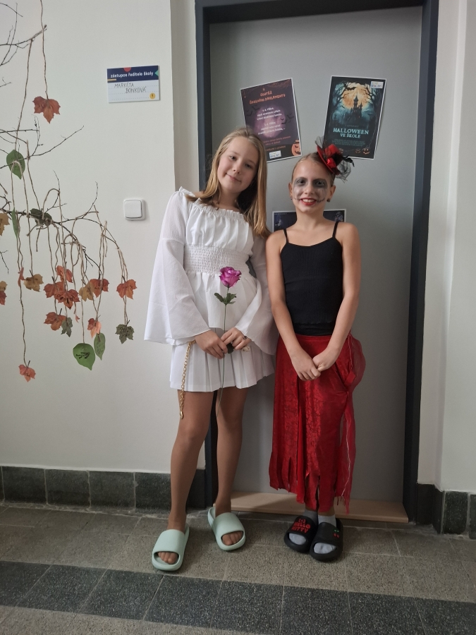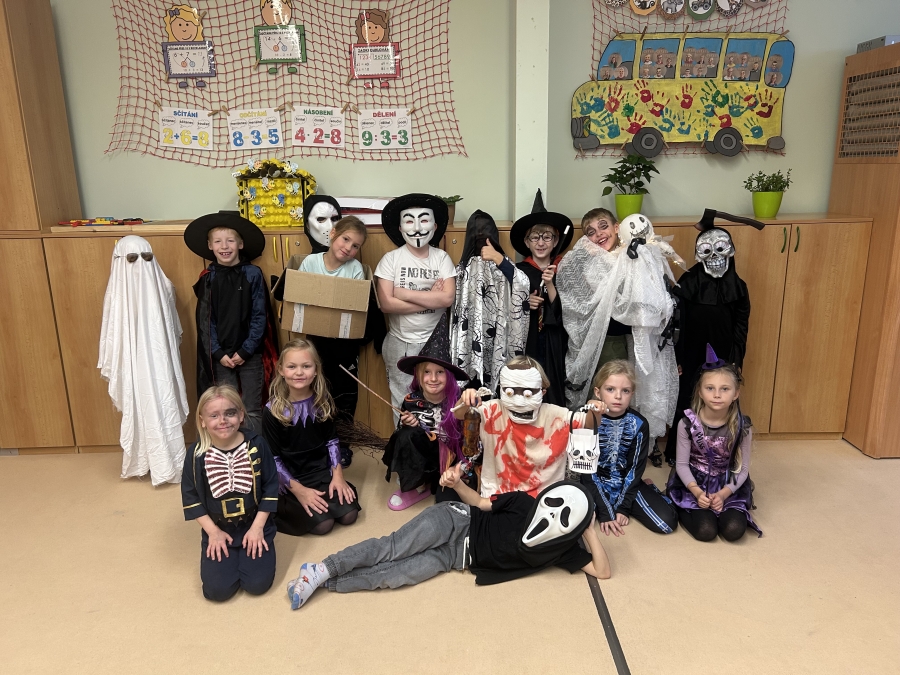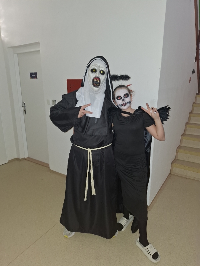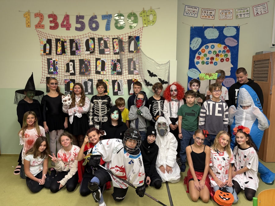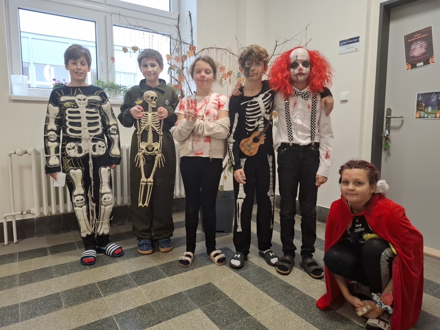 V pondělí 3. listopadu se naše škola proměnila v místo plné kouzel, masek a strašidelné atmosféry. Chodby zaplnily čarodějnice, duchové, zombíci, kostlivci, bubáci a další podivné bytosti. Téměř všechny děti dorazily v kostýmu – a letos se nenechali zahanbit ani naši učitelé!