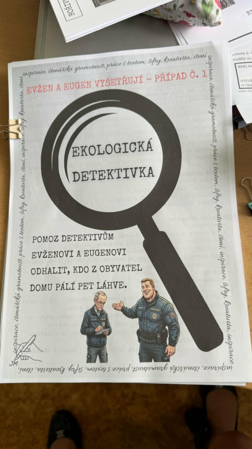 V rámci výuky českého jazyka a literatury se žáci 7. třídy zapojili do netradiční aktivity, jež byla věnována oslavám Dne Země, s názvem eko detektivka. Cílem hodiny bylo rozvíjet čtenářskou gramotnost, schopnost práce s textem a zároveň vést žáky k zamyšlení nad ochranou životního prostředí.